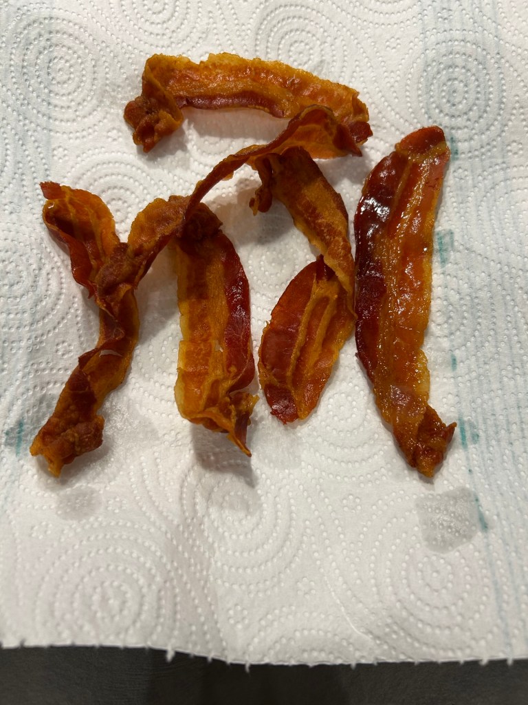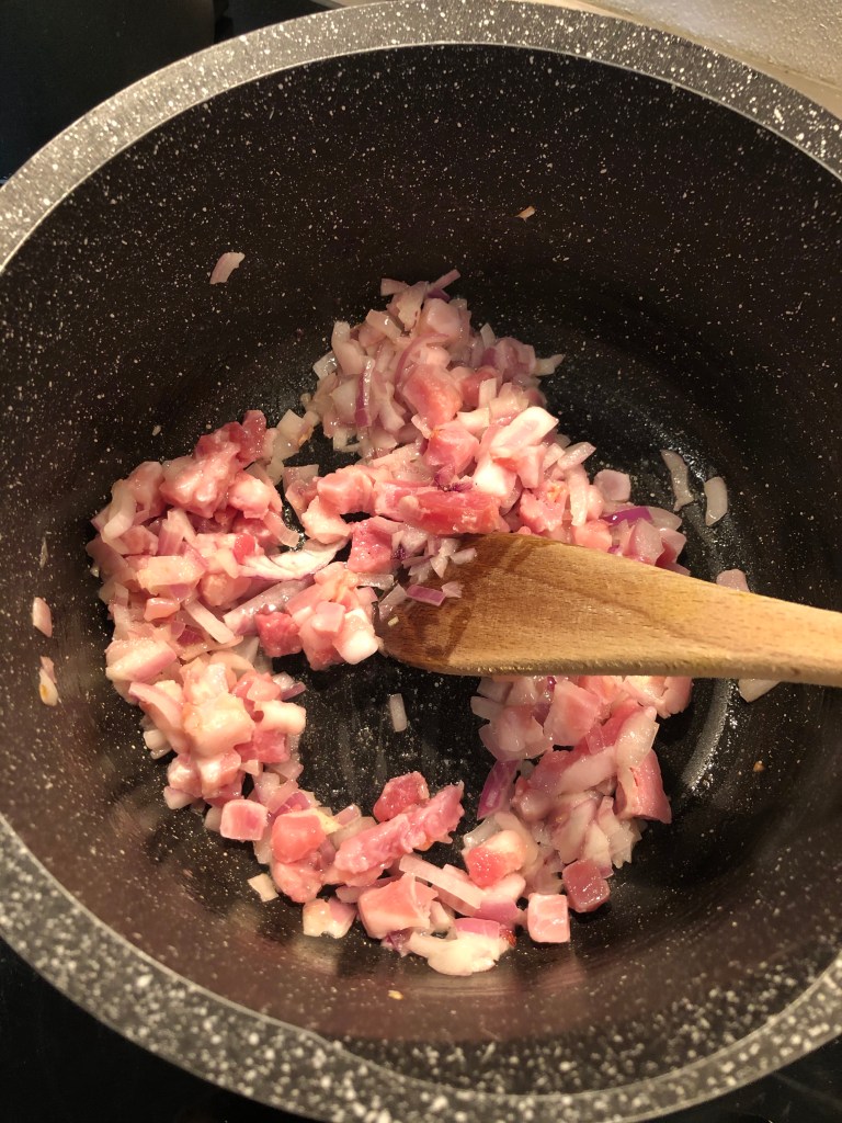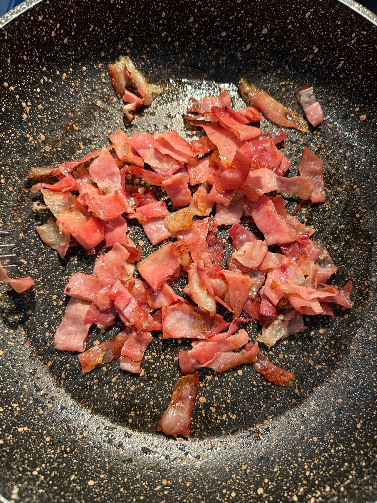 A cottura ultimata asciugo il bacon su carta assorbente e lo lascio raffreddare, in questo modo diventerà croccante e darà una nota di sapidità al risotto