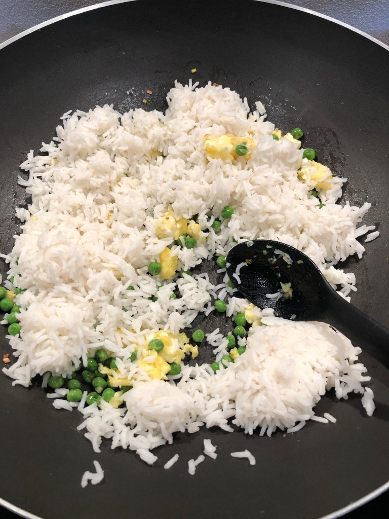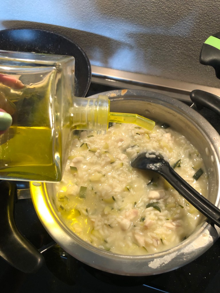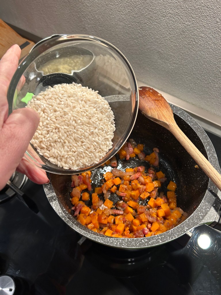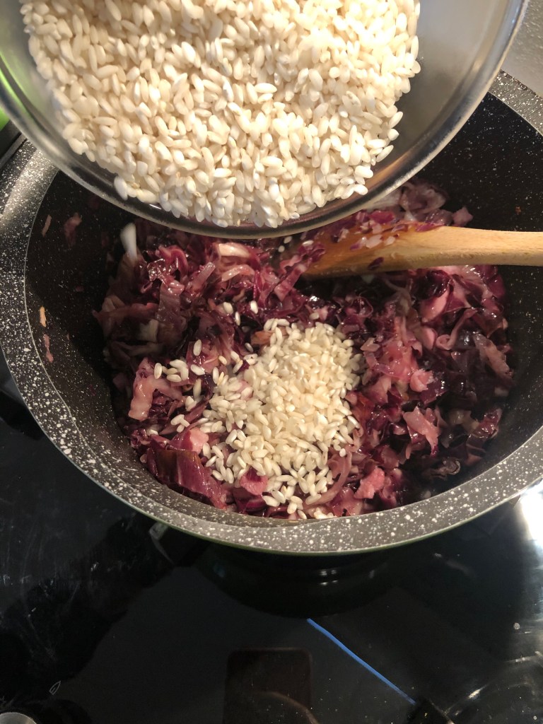Aggiungo il riso, mescolo bene e aggiungo dell’olio
