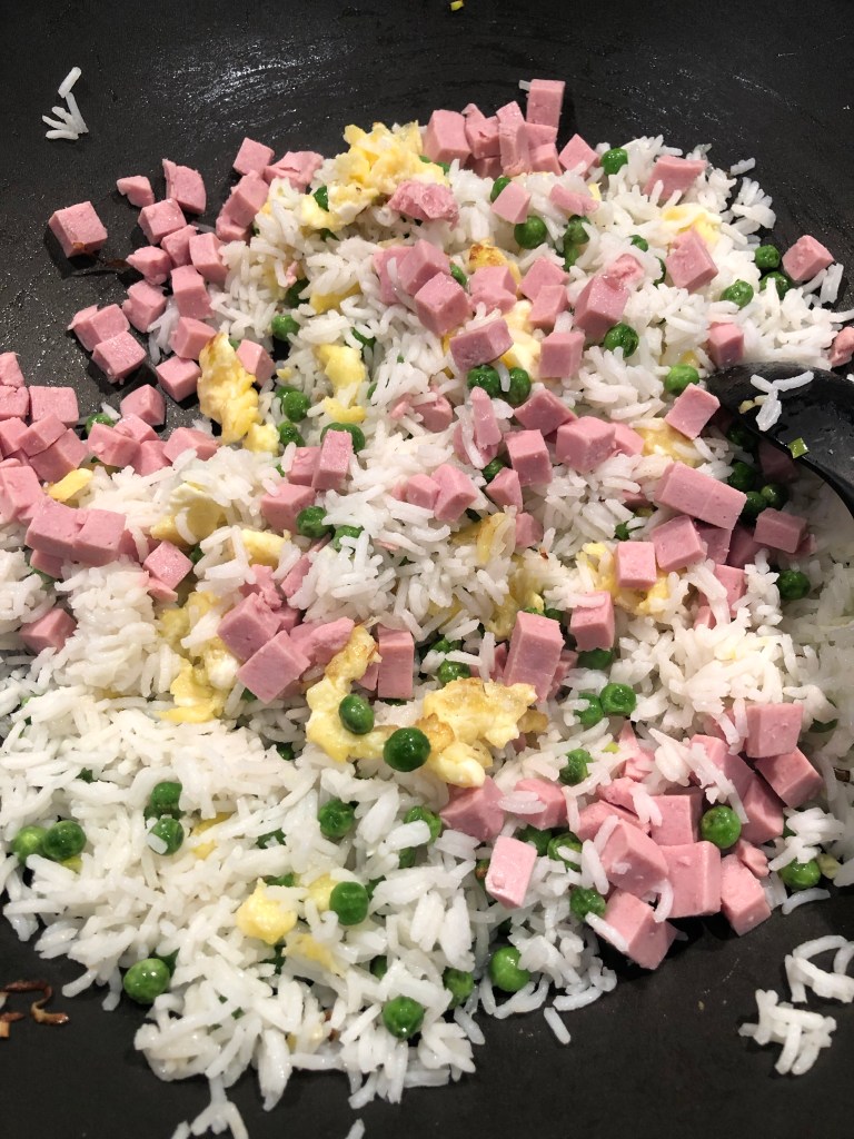 Quando il riso é cotto, mi raccomando al dente, aggiungo la mortadella e spengo il gas
