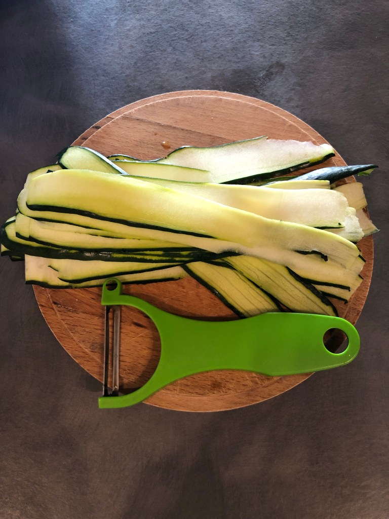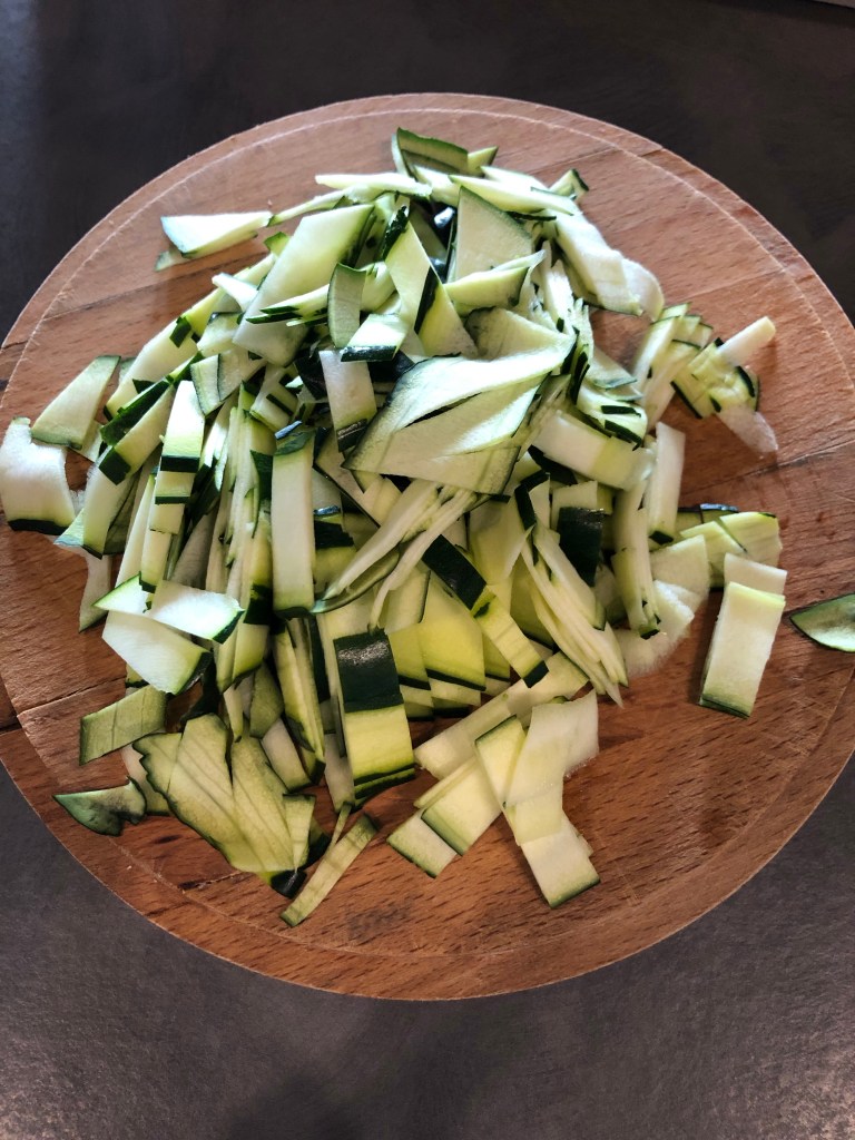 Taglio la mortadella a striscioline e il finocchio sottile con una mandolina