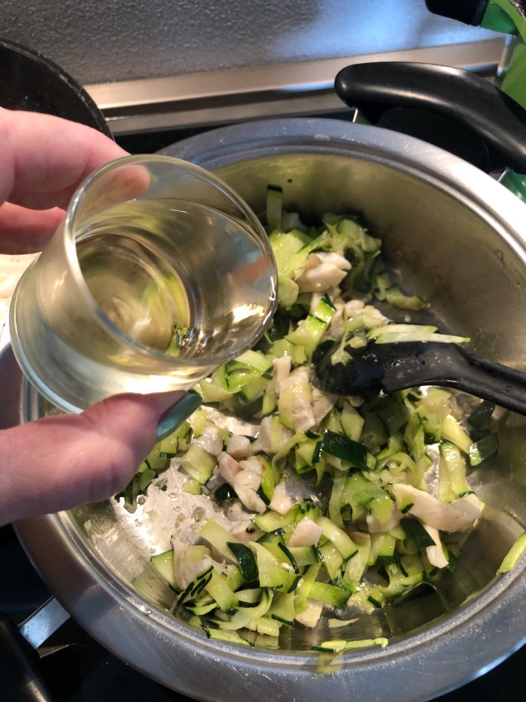 Quindi sfumo con il vino bianco e lo lascio evaporare