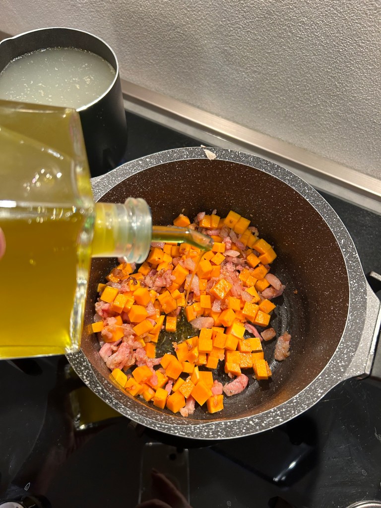 La lascio soffriggere dolcemente per una decina di minuti, deve diventare morbida e cremosa, se serve aggiungo qualche cucchiaio di brodo
