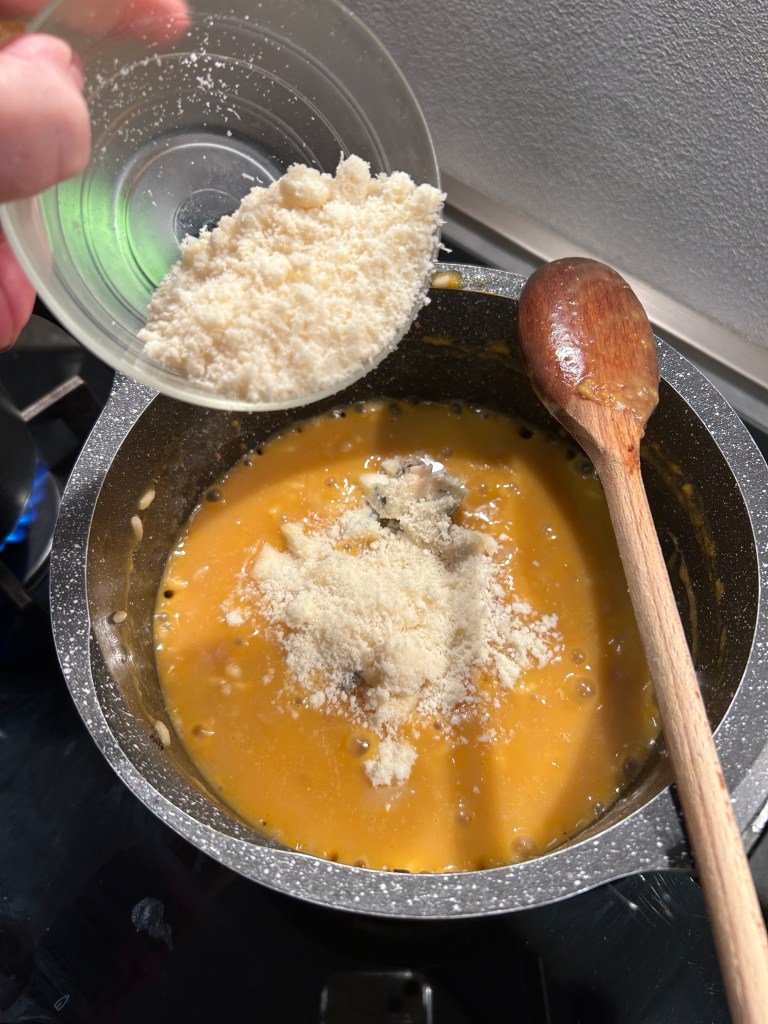 Aggiungo una generosa dose di parmigiano e una macinata di pepe