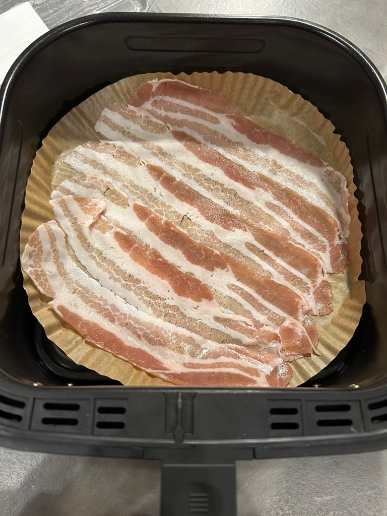 Impiatto versando il risotto sulla base e sbriciolando in superficie il bacon croccante sbriciolato che ho cotto in friggitrice ad aria a 200 gradi per 15 minuti o finché diventa croccante, girandolo a metà cottura, potete fare questa operazione anche su una griglia, nel microonde o nel forno classico