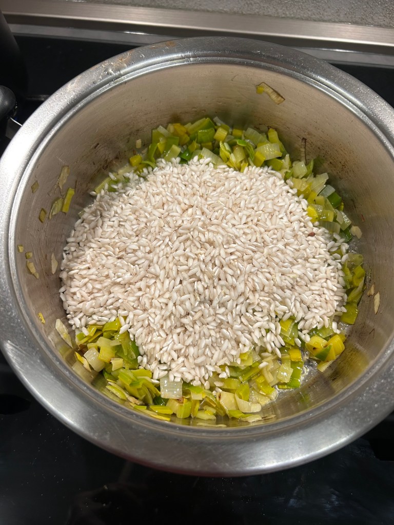 Aggiungo il riso e lascio tostare per alcuni minuti