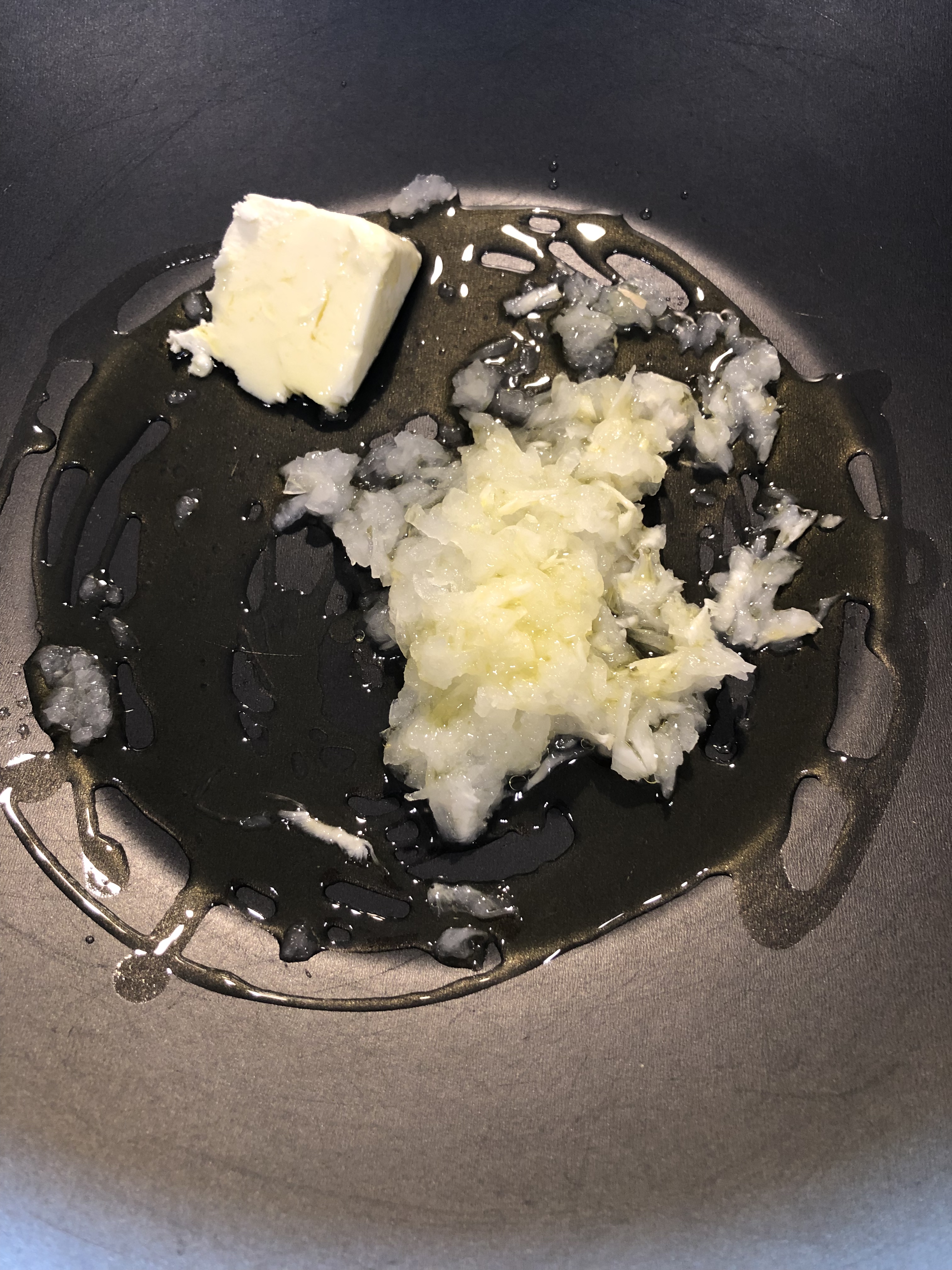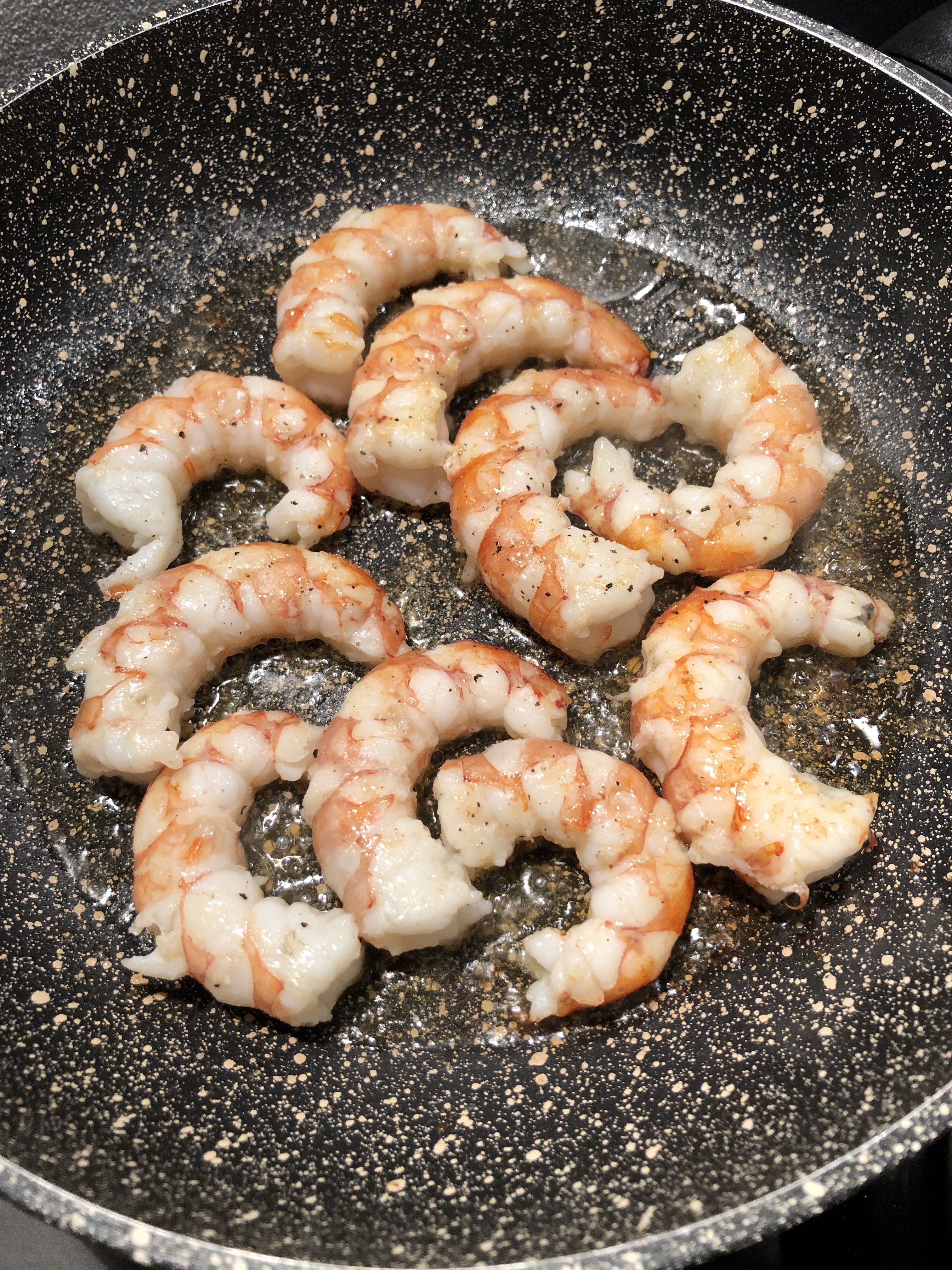 Porto a cottura ci vorranno 13/15 minuti, intanto in un padellino aggiungo una noce di burro e cuocio velocemente i gamberi regolando di sale e pepe
