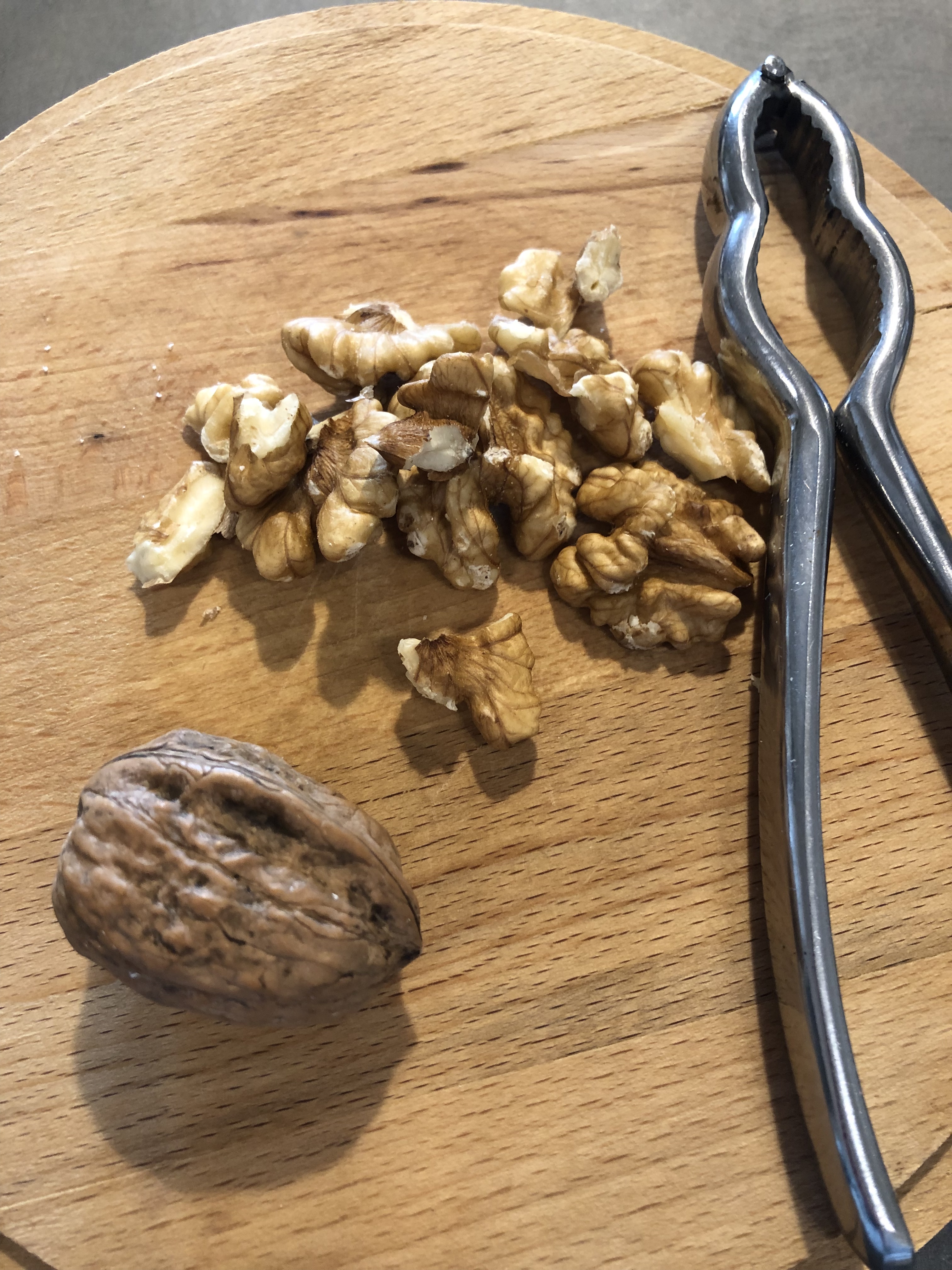 Impiatto e sbriciolo sopra alcuni gherigli di noci