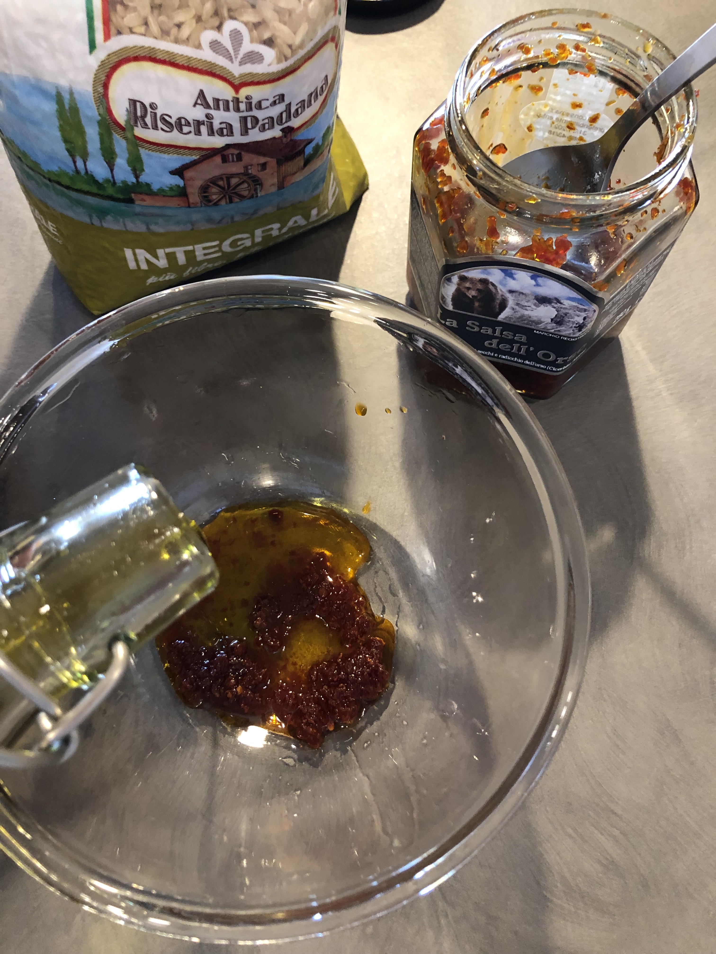 In una ciotola verso 3 cucchiai di salsa di pomodori secchi