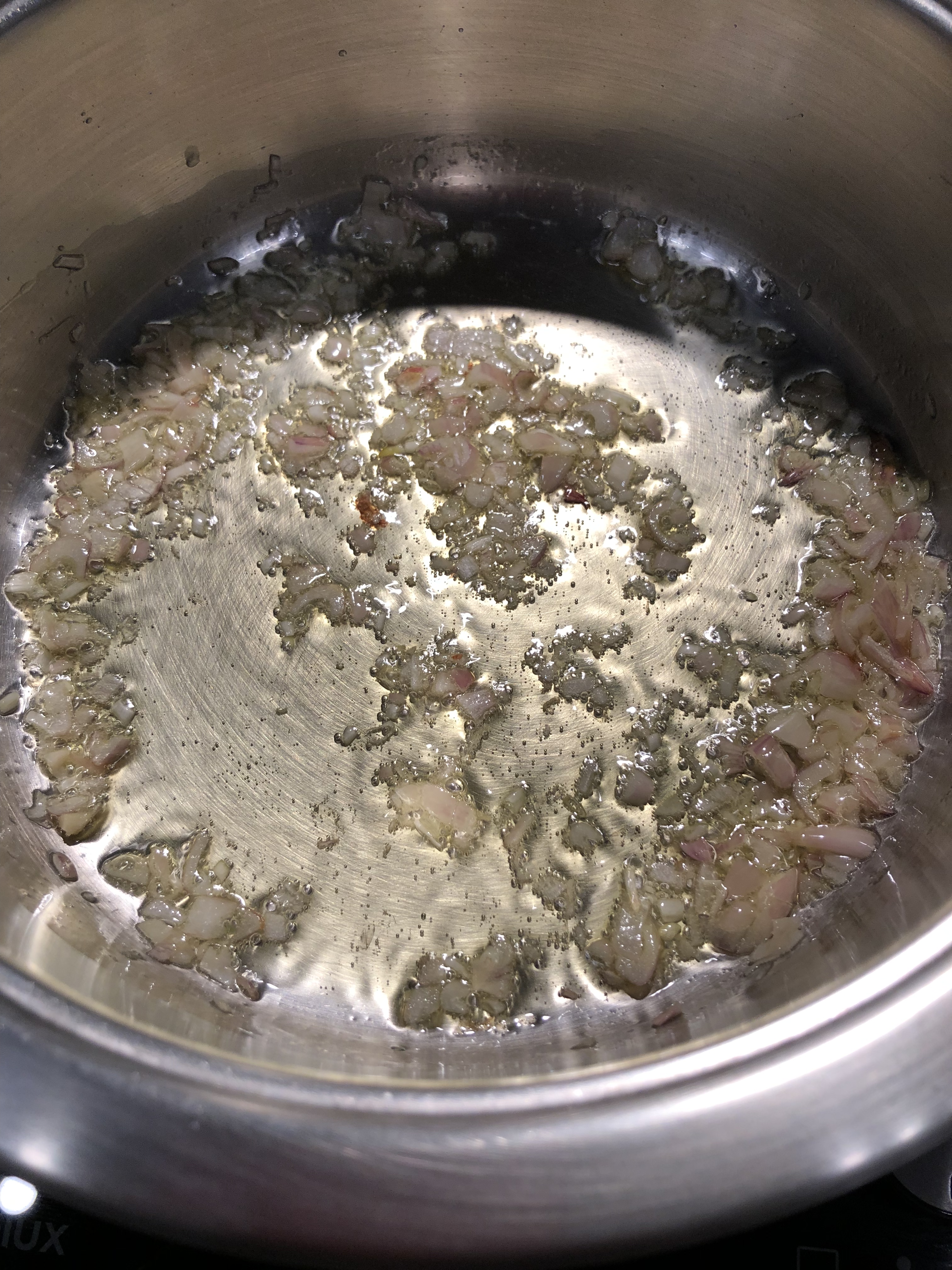 In una padella metto dell”olio e lo scalogno tritato e lascio soffriggere