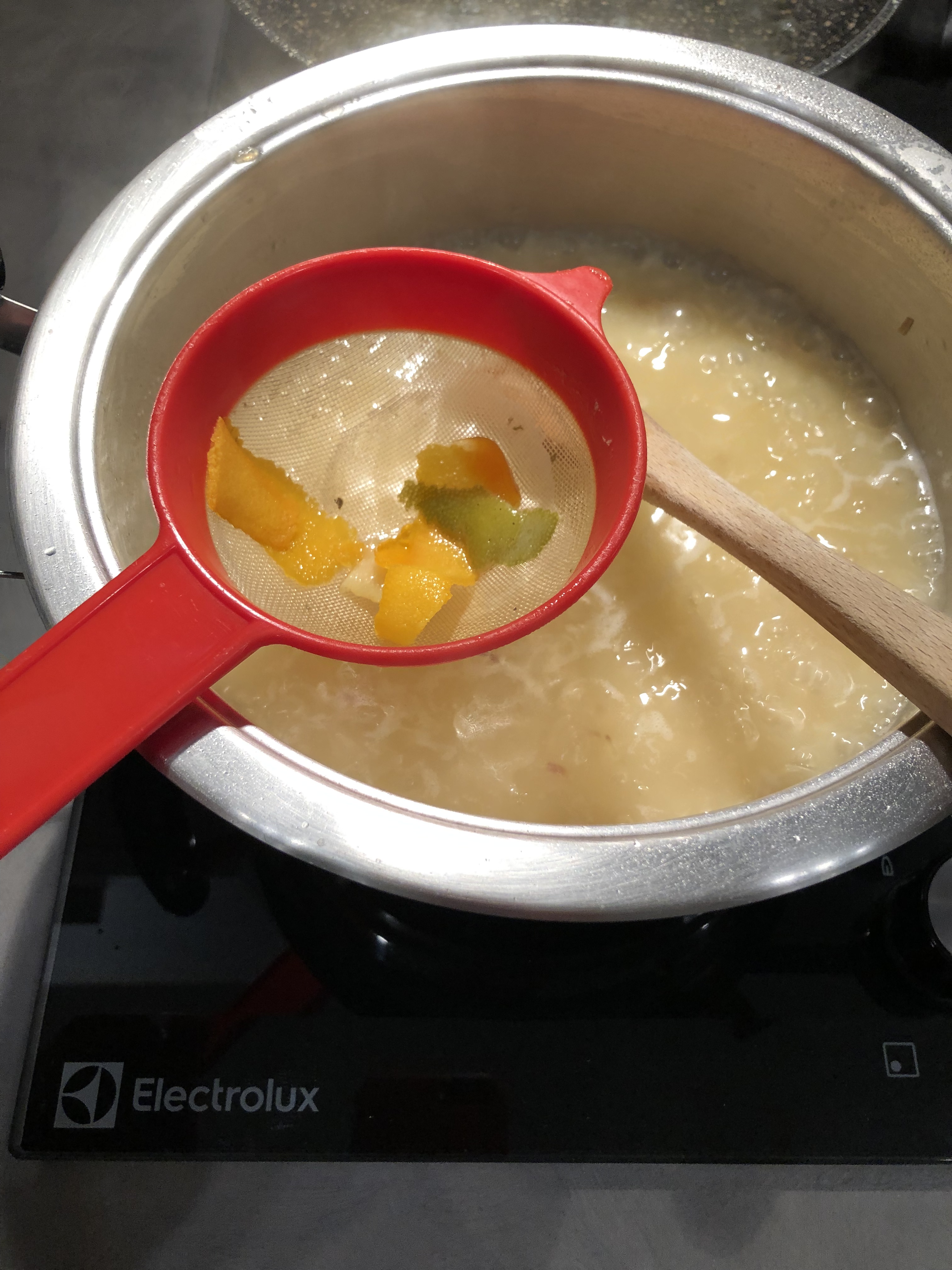 Quando il riso é cotto tolgo dal fuoco, aggiungo gli agrumi, il burro