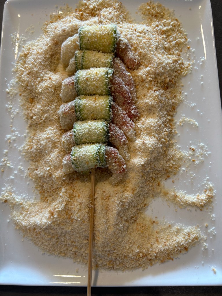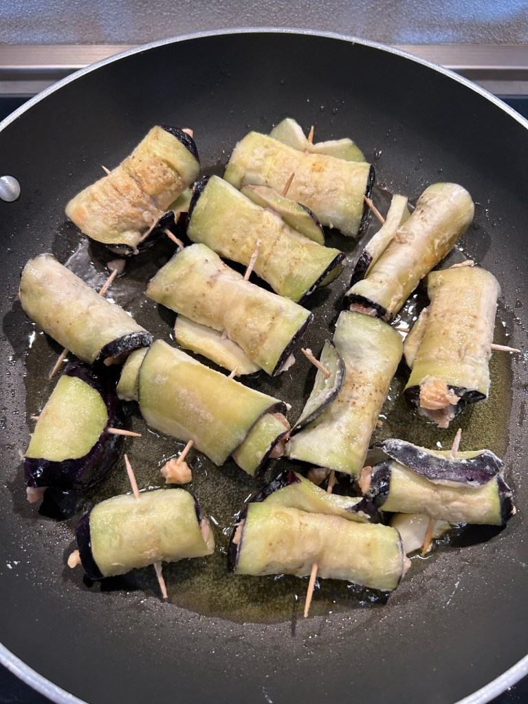 Arrotolo chiudendo bene e fisso con uno stuzzicadenti e li preparo tutti