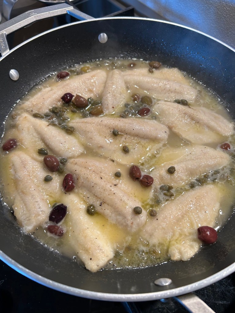 Aggiungo un barattolo di salsa, i capperi e le olive, aggiungo anche un goccio di acqua, poi copro e lascio cuocere per 15/20 minuti a fuoco dolce aggiungendo se serve ancora un goccio di acqua, aggiungo poco sale