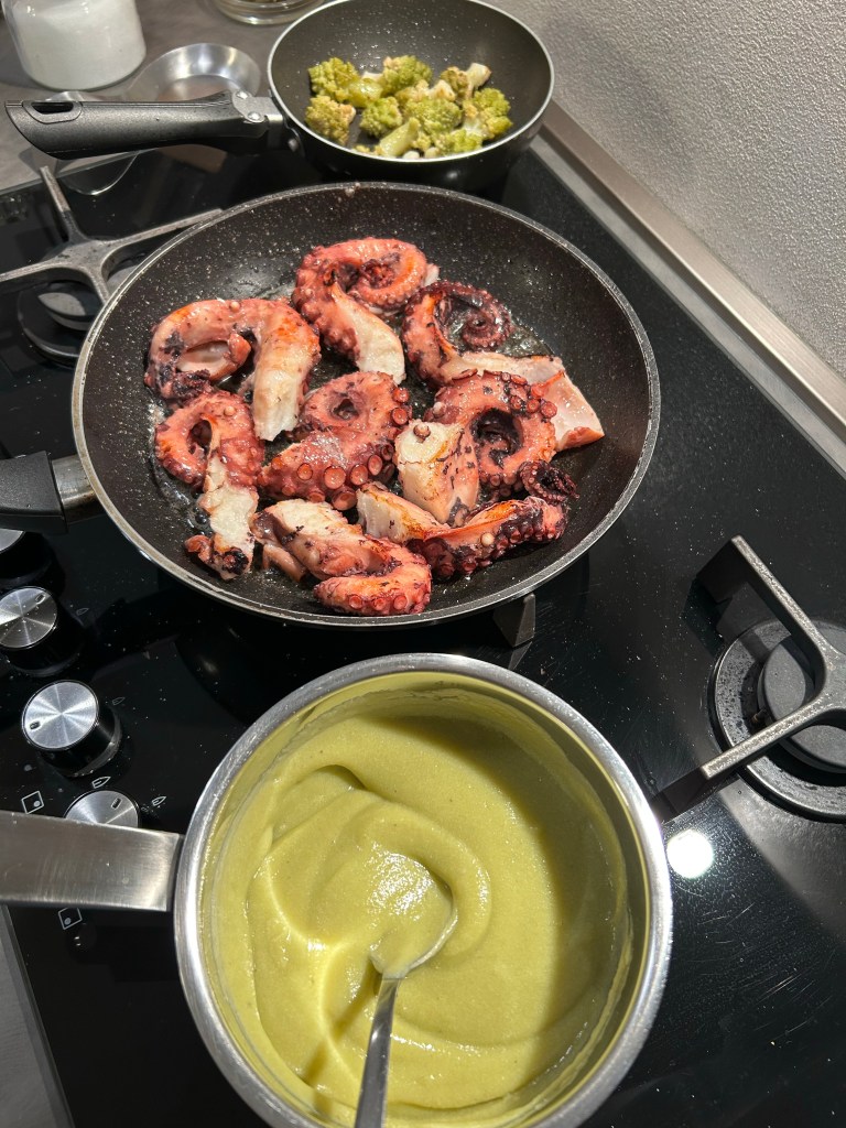In una padella verso dell’olio piccante e uno spicchio d’aglio, lascio soffriggere poi aggiungo gli involtini, li lascio rosolare