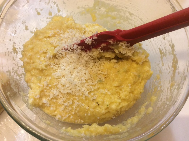 Inforno a 180 gradi per 20/25 minuti, lo sforno, aggiungo alcune scaglie di grana, due fili di erba cipollina è un filo di olio, se invece volete toglierli dallo stampo mettete sul fondo un dischetto di carta forno prima di versare il composto, a cottura ultimata basterà lasciagli intiepidire, passare un coltellino lungo i bordi e capovolgere.È ottimo accompagnato da una crema al parmigiano !!