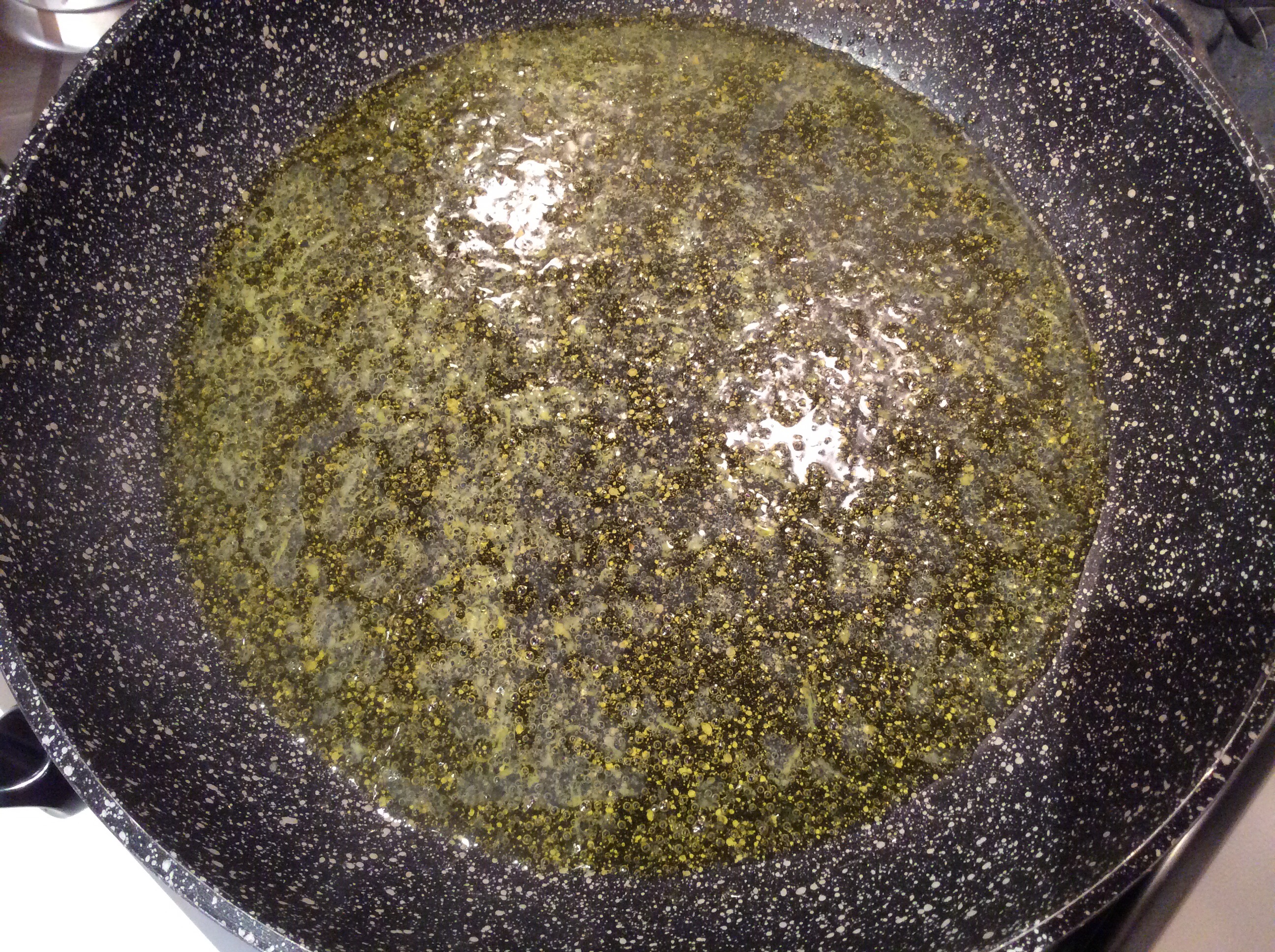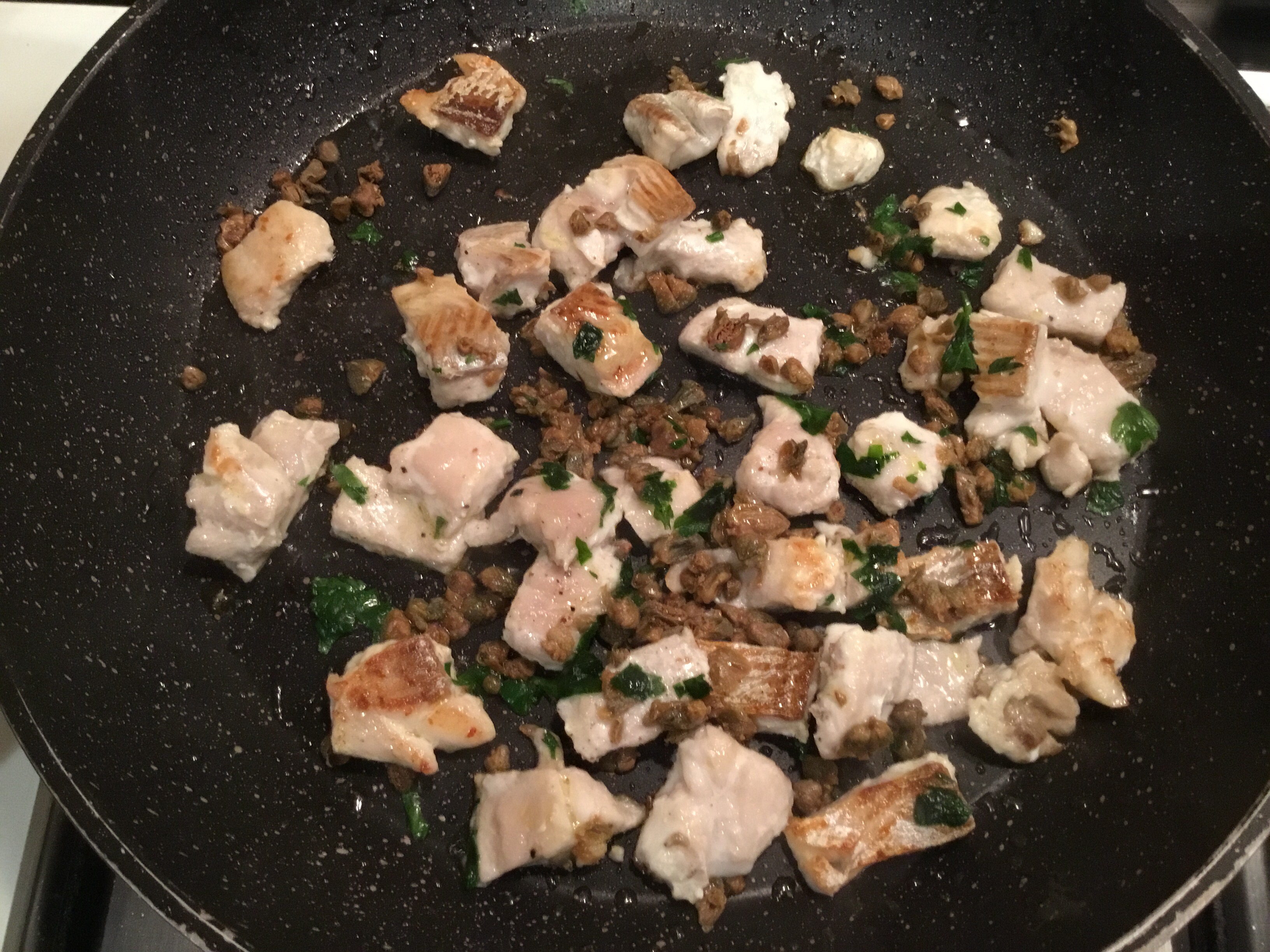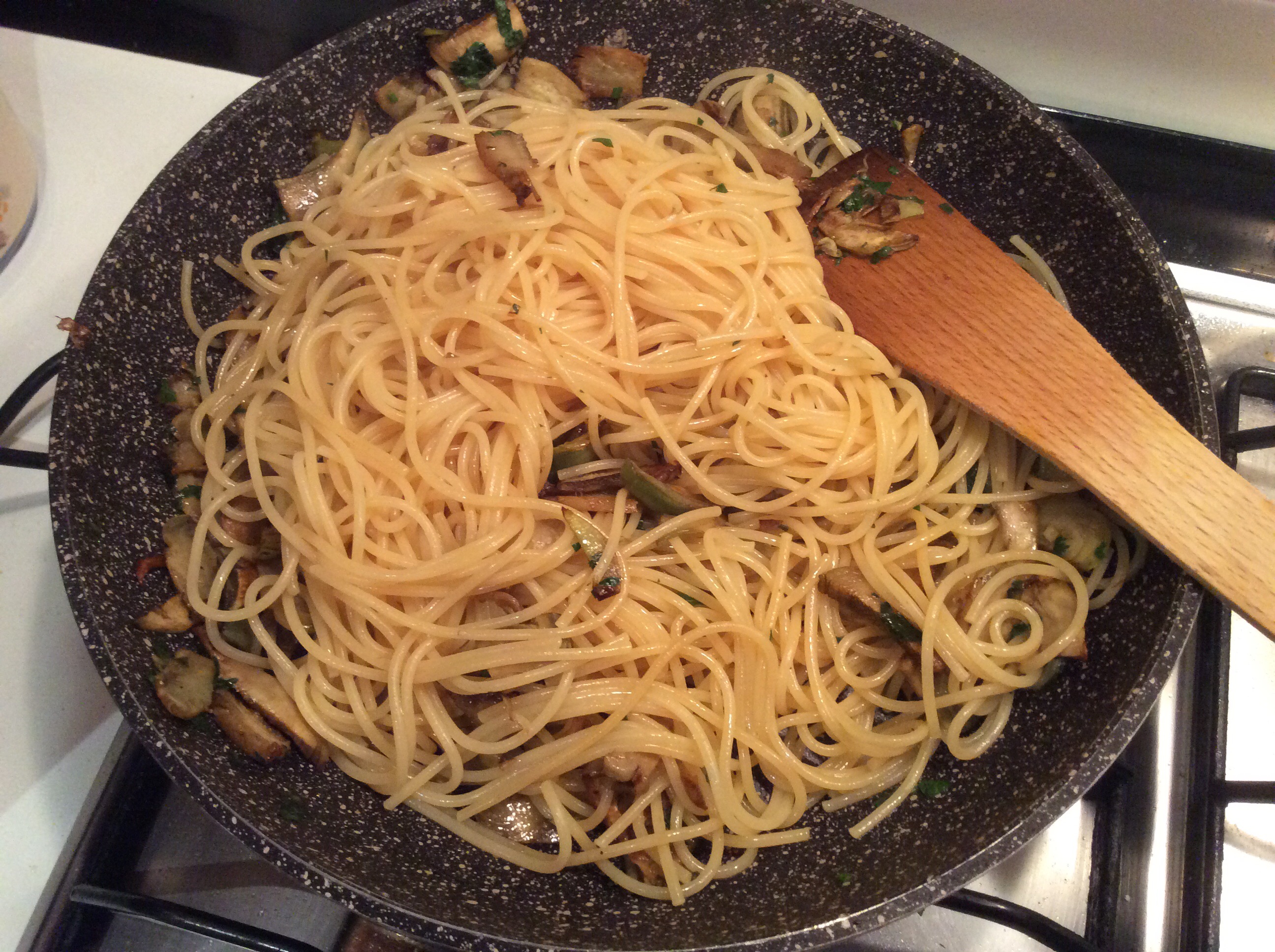 Cuocio per 5 minuti, nel frattempo cuocio gli spaghetti, aggiungo del prezzemolo tritato