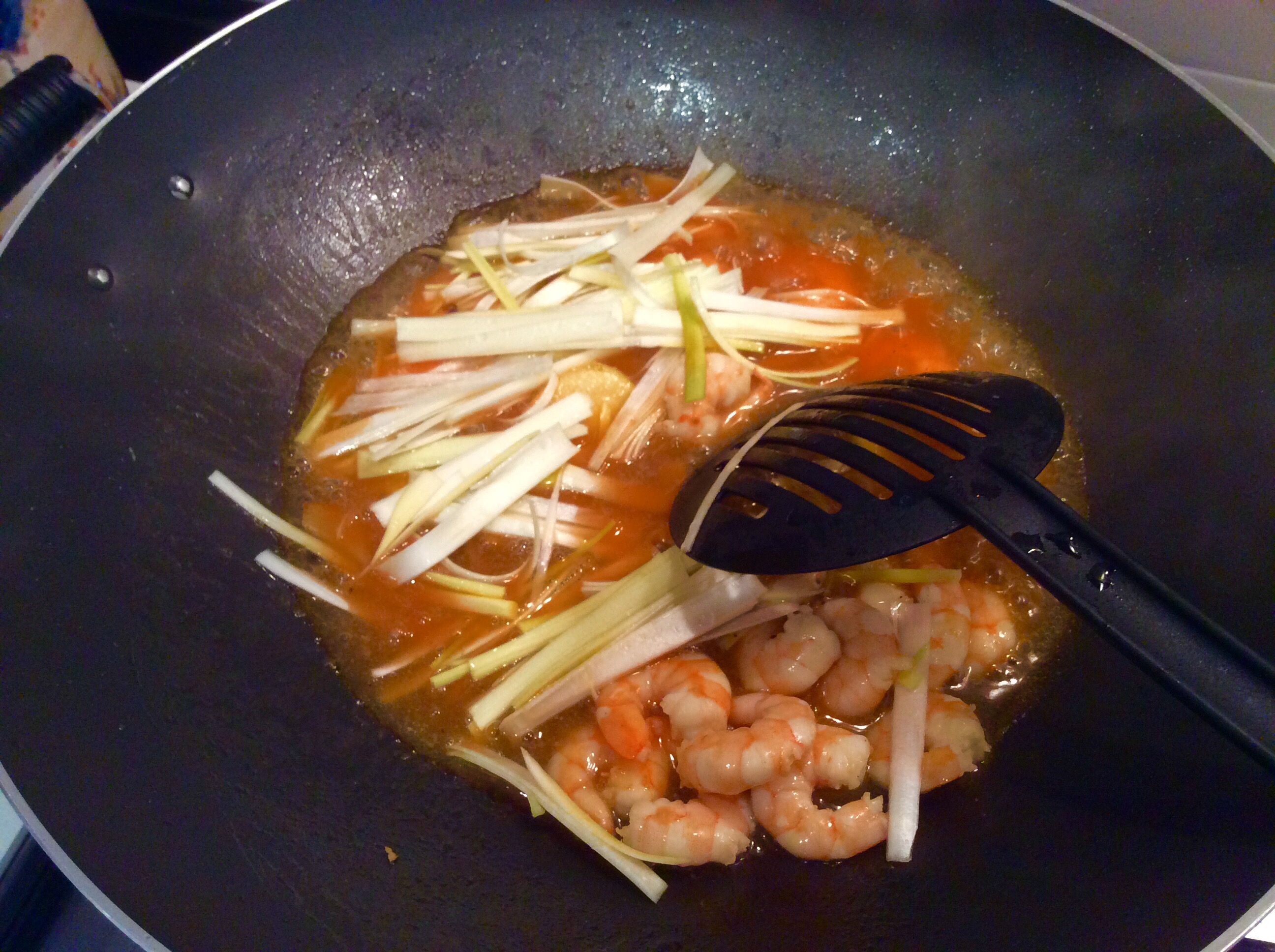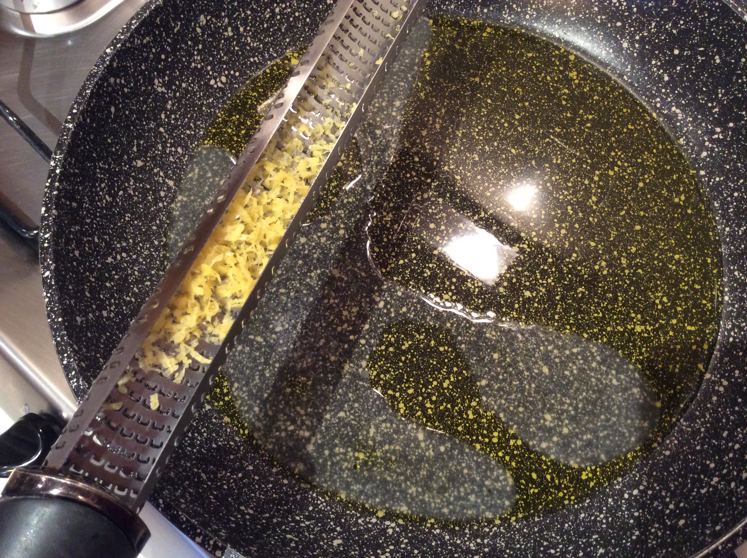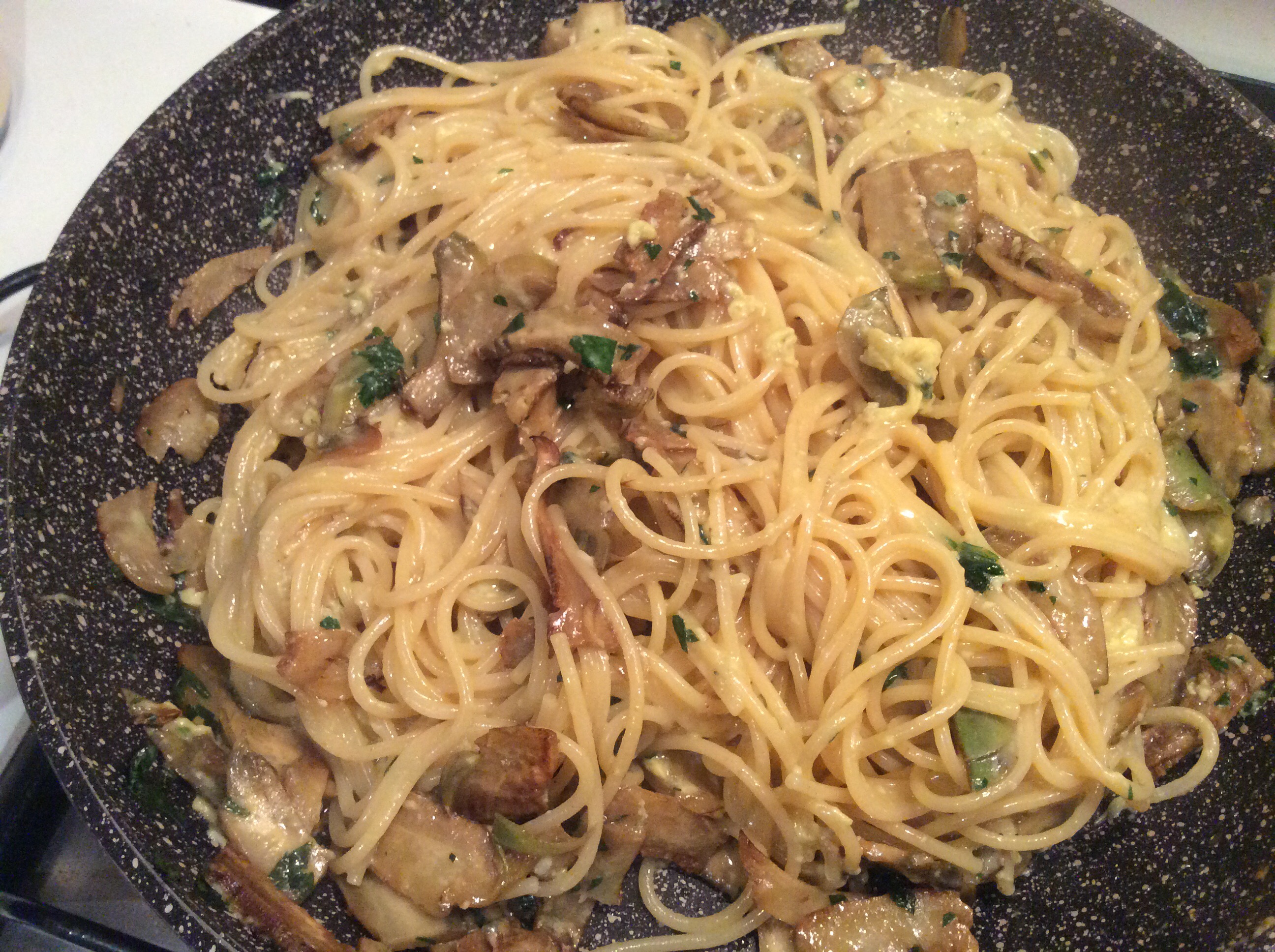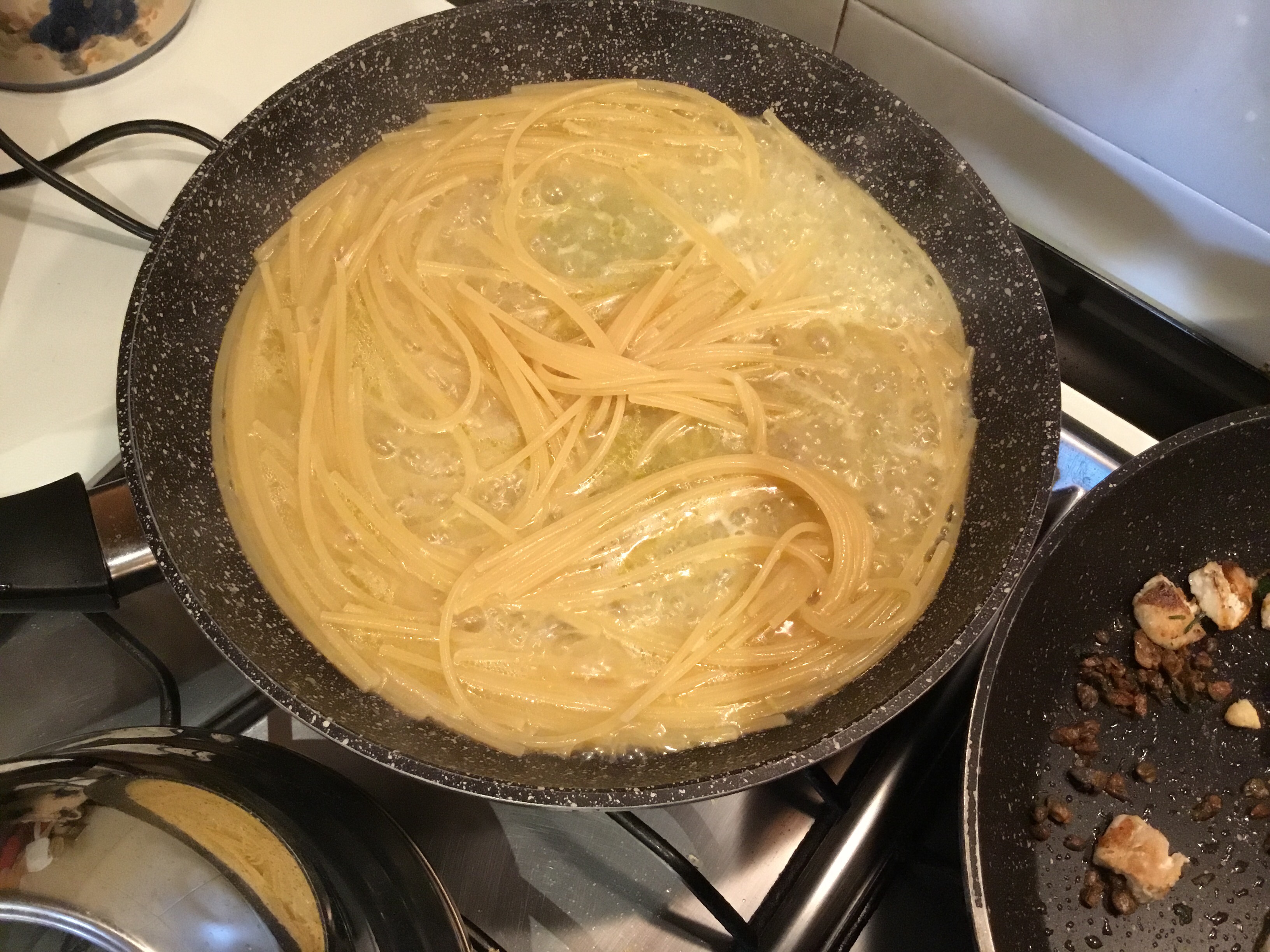 Cuocio per 5 minuti, nel frattempo cuocio gli spaghetti, aggiungo del prezzemolo tritato