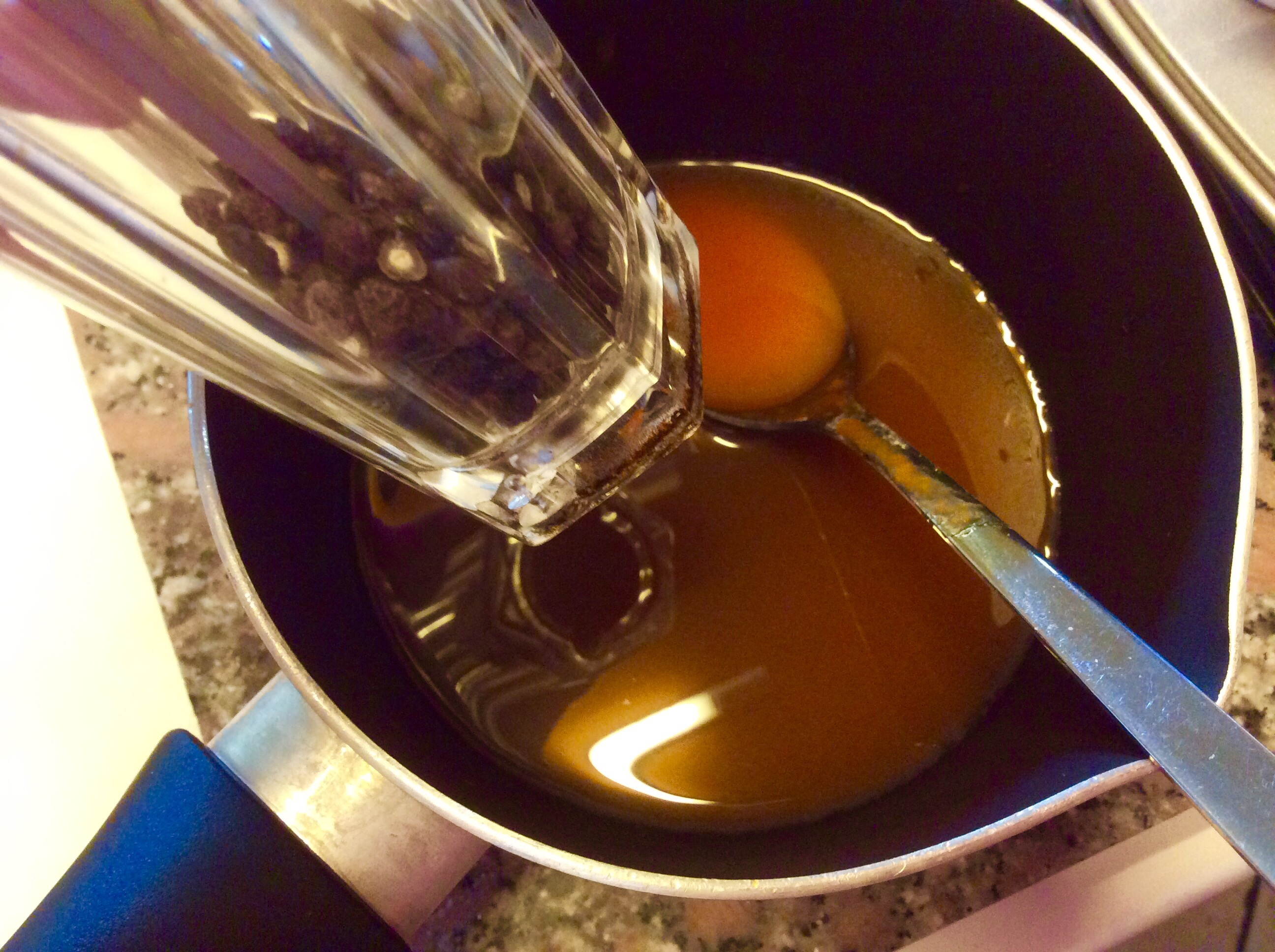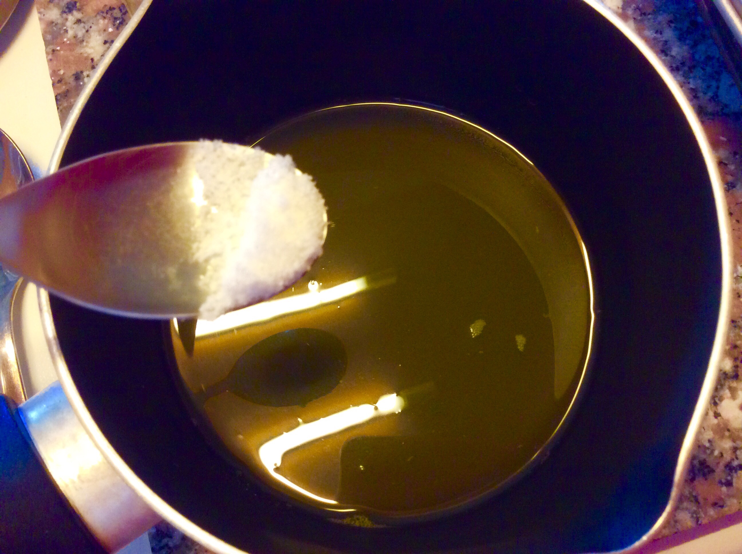 Verso la crema in una padella e aggiungo del peperoncino e un pizzico di sale, poco perché le cozze sono già sapide, lascio sobbollire alcuni minuti