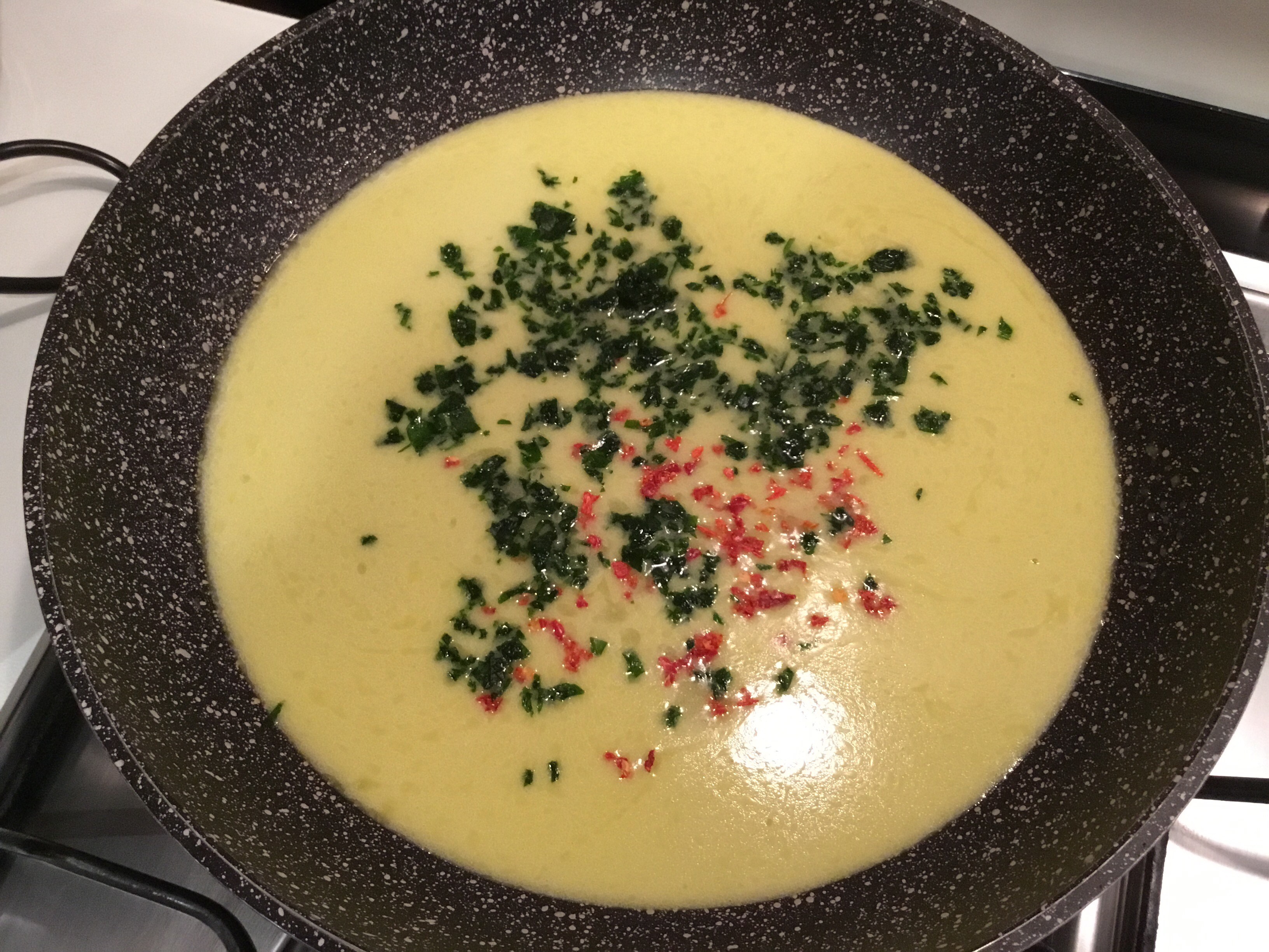 Aggiungo un trito di prezzemolo e un filo di olio al peperoncino