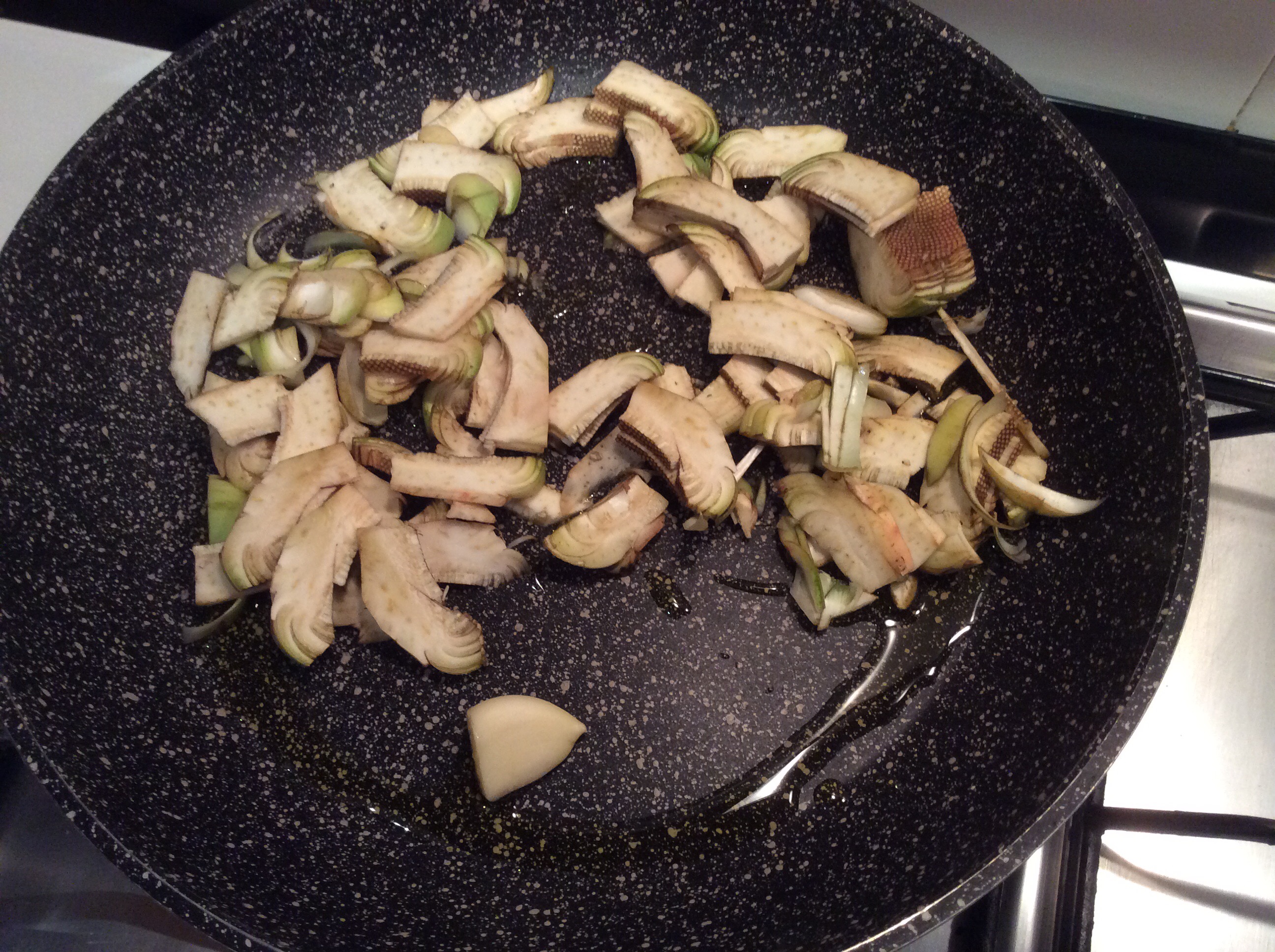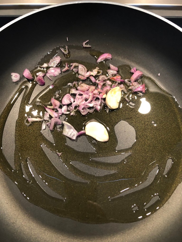 Le aggiungo nella padella con la loro acqua contenuta nella confezione, con la crema di aglio