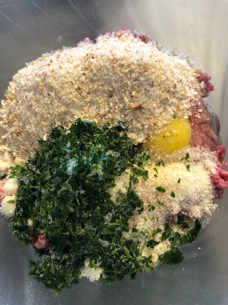Verso il composto ottenuto in una ciotola e unisco il formaggio grattugiato, il prezzemolo, sale, pepe