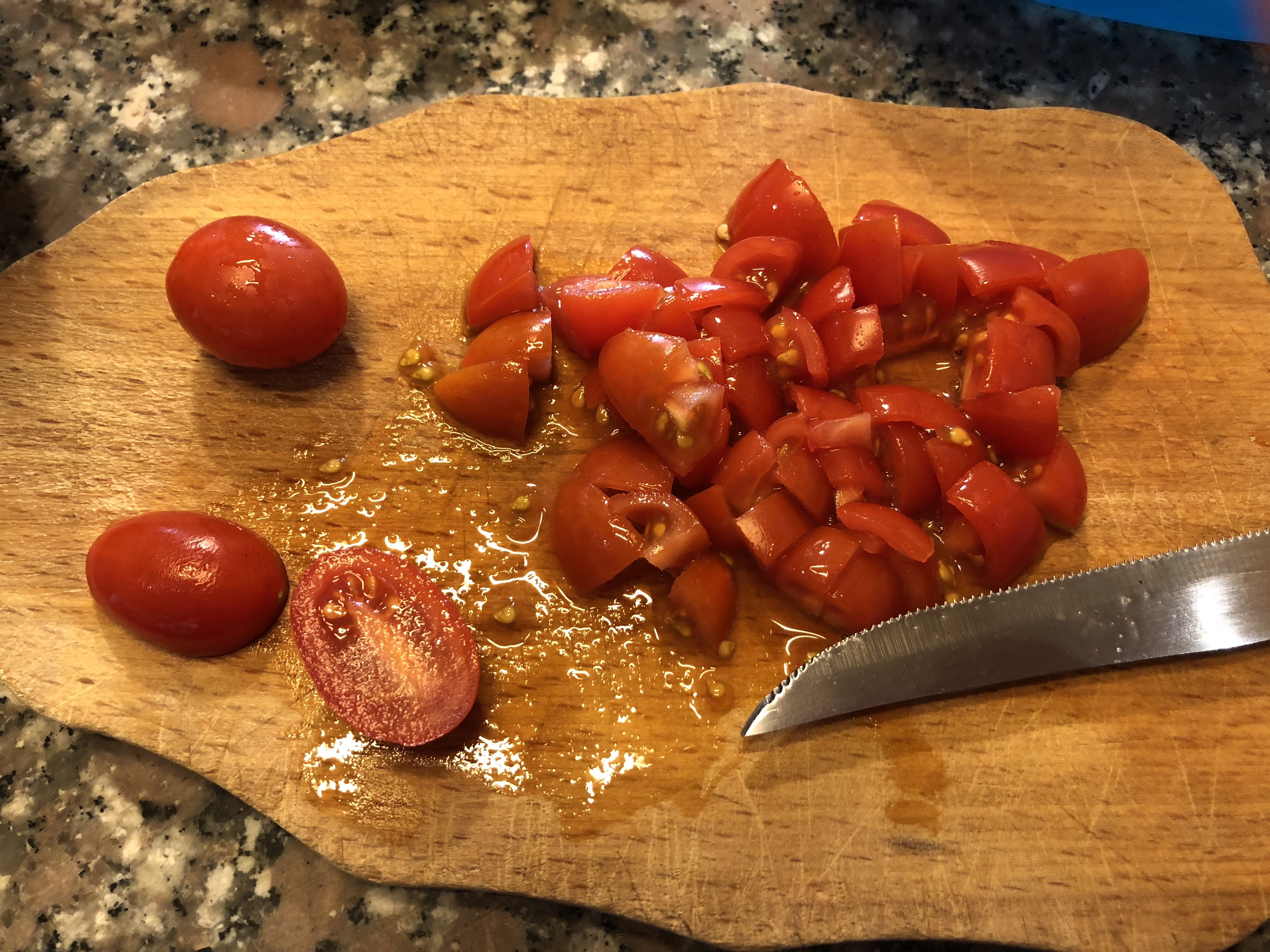 Taglio i pomodorini a cubetti