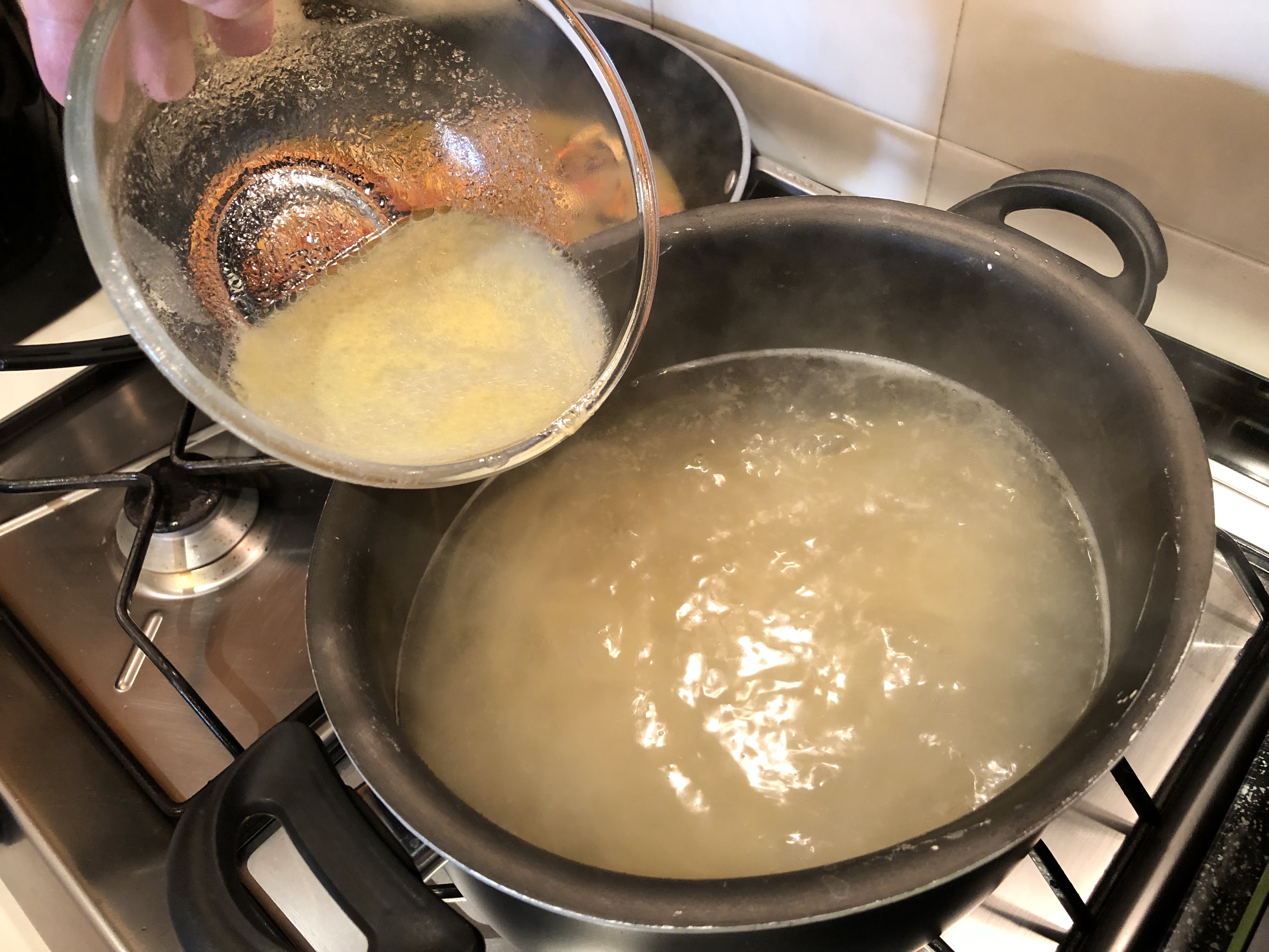 Intanto cuocio la pasta senza salare l”acqua perché aggiungo il resto del liquido delle vongole che é molto salato