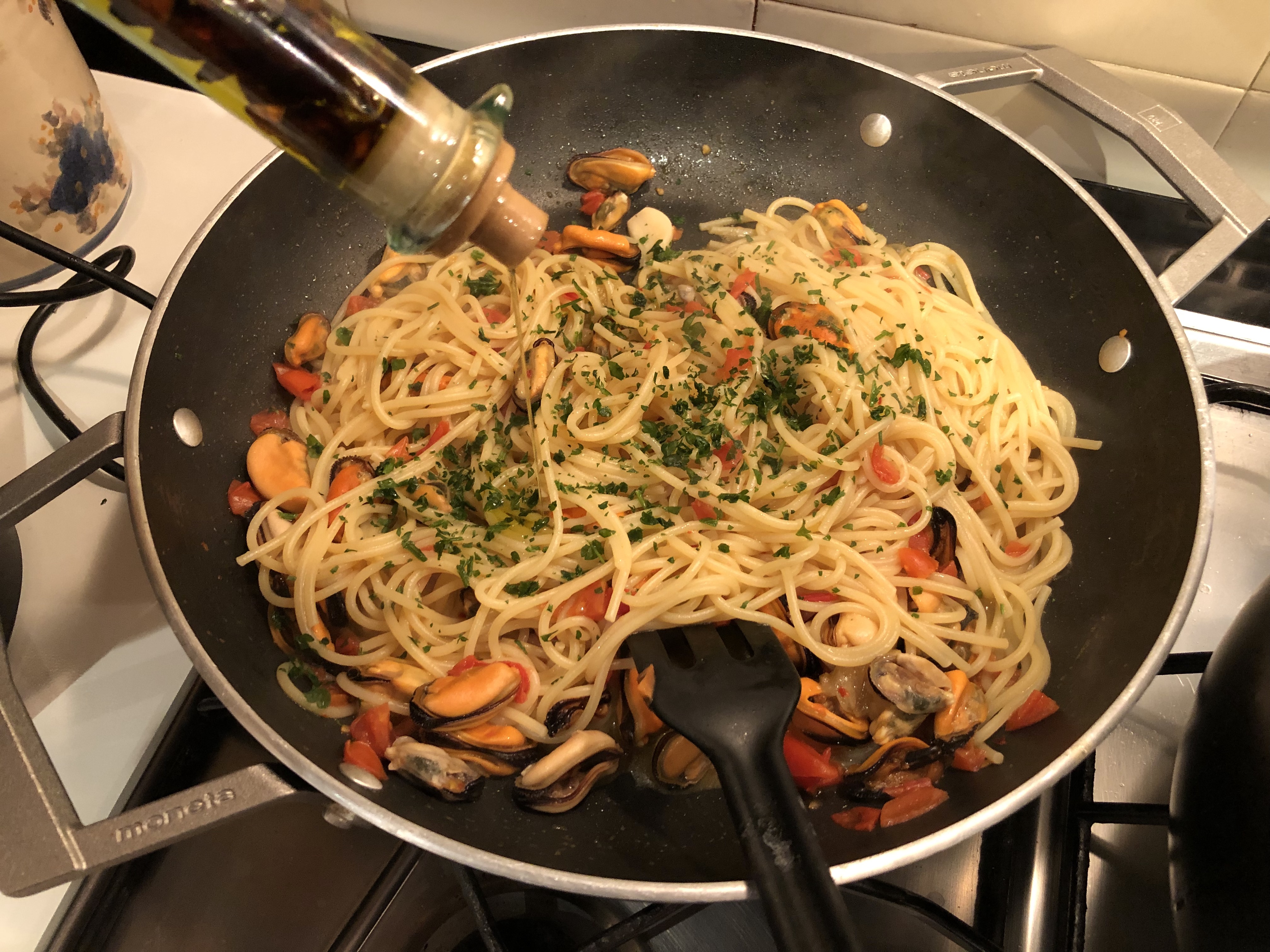 Mi piace molto aglio olio, con le cozze diventa super!
