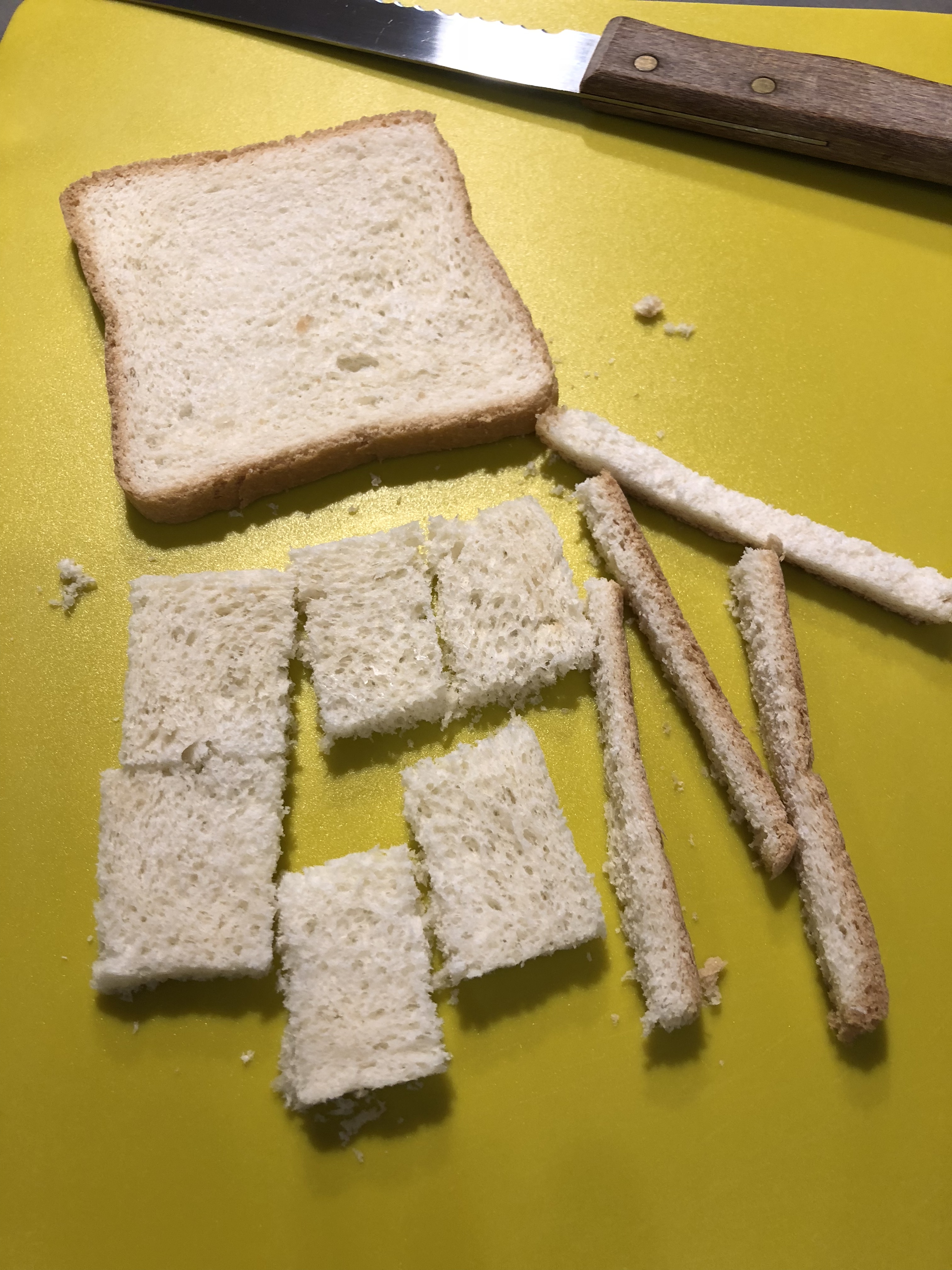 Elimino la crosta al pane e lo taglio a pezzetti