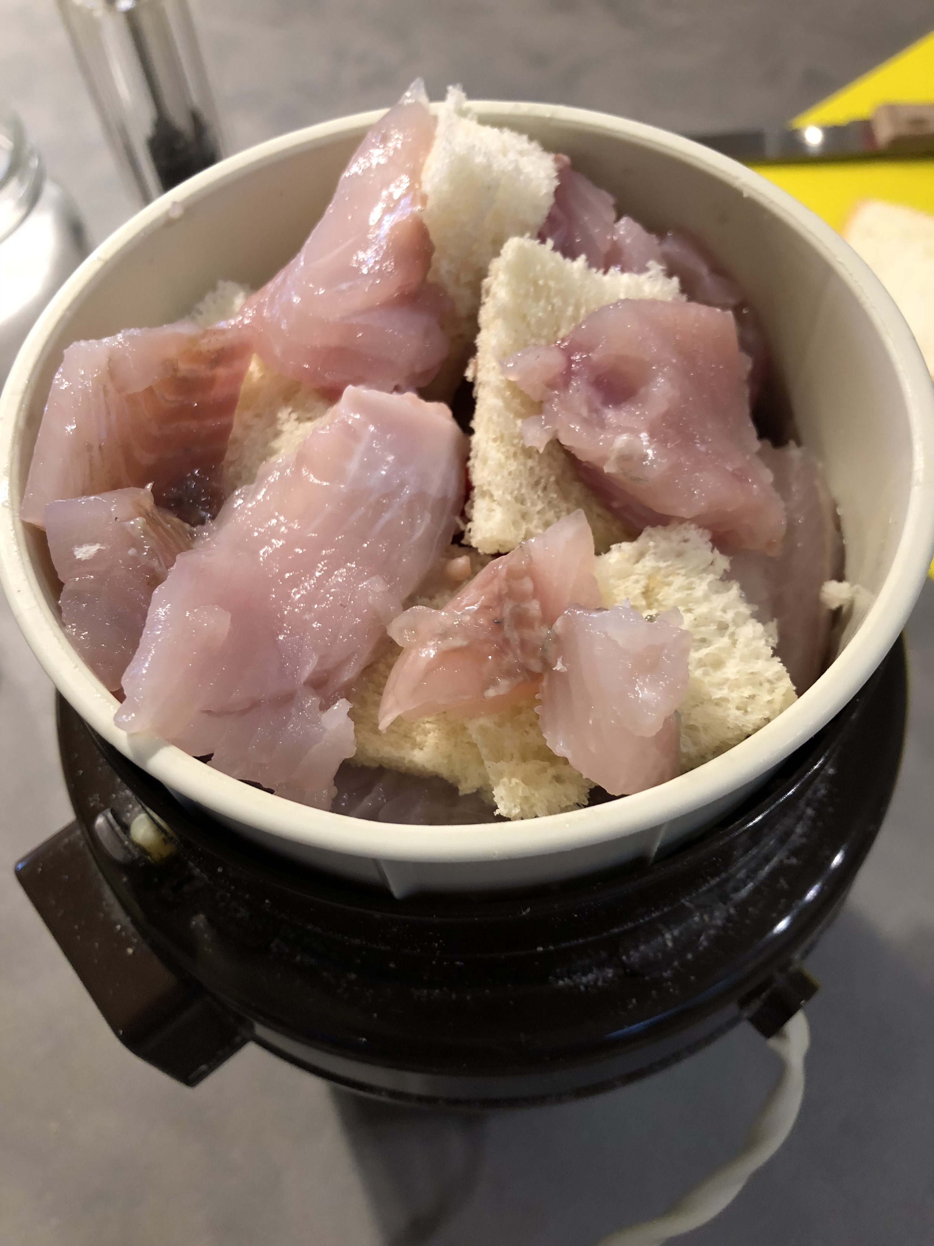 Inserisco il pesce e il pane in un mixer