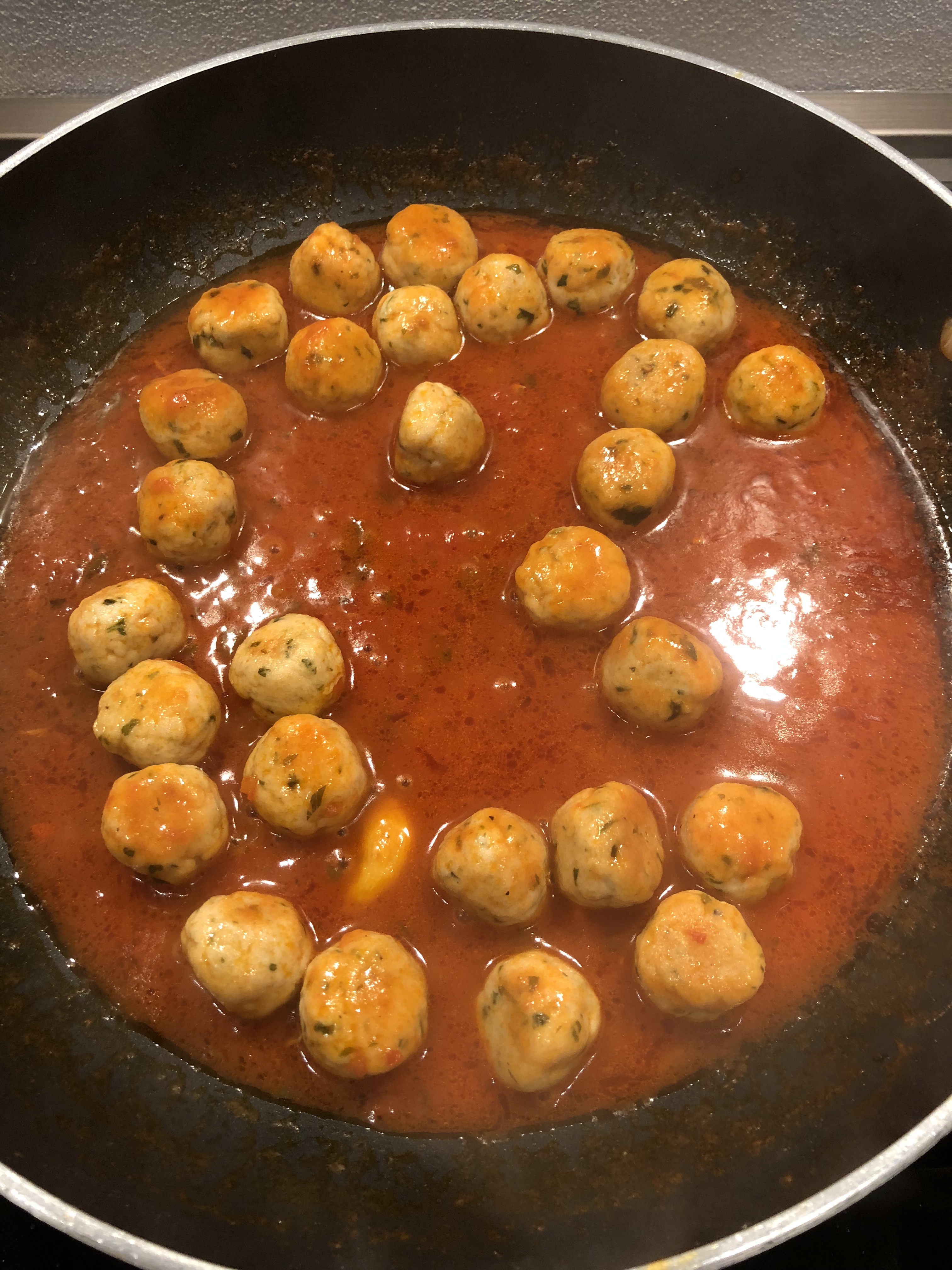 Abitando sul Lago di Garda ho la fortuna di avere a disposizione del pesce sempre freschissimo, questa ricetta é per me un piatto unico completo, quindi io ho abbondato con le polpettine, un piatto veramente buono saporito leggermente piccante