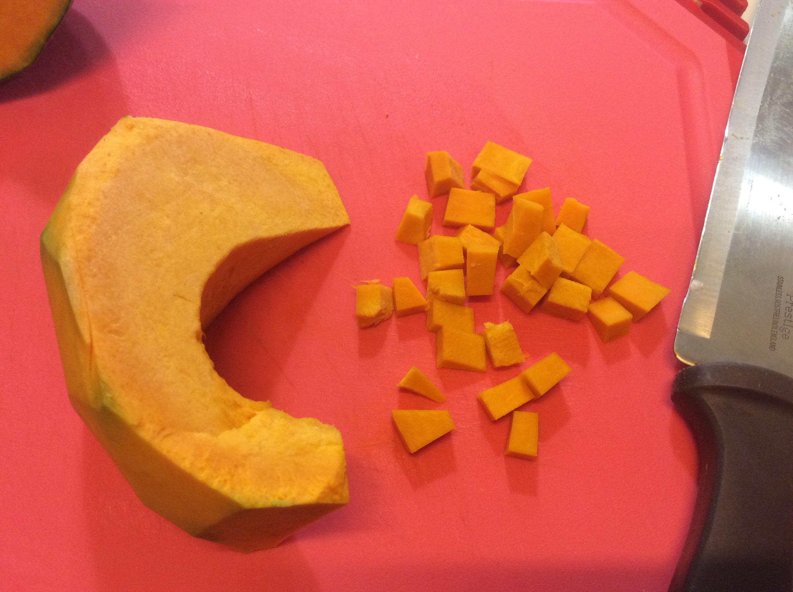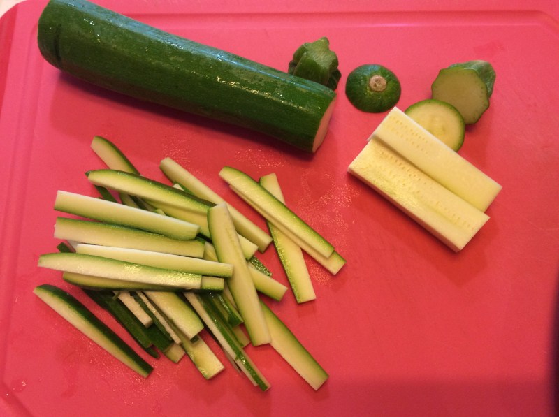 Taglio a pezzi la zucchina eliminando la parte centrale poco saporita e ricca di acqua