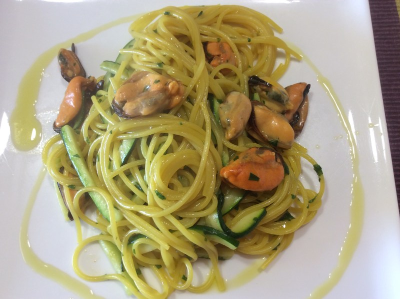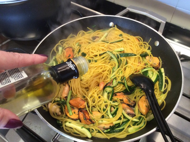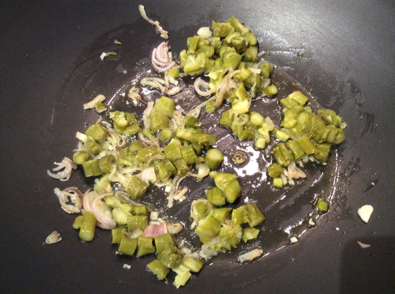 Unisco le zucchine e cuocio 5 minuti sempre mescolando e a fuoco alto