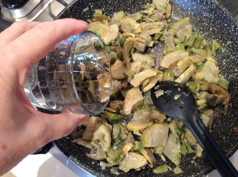 Dopo 5 minuti aggiungo poco sale senza esagerare perchè la soia darà ulteriore sapidita