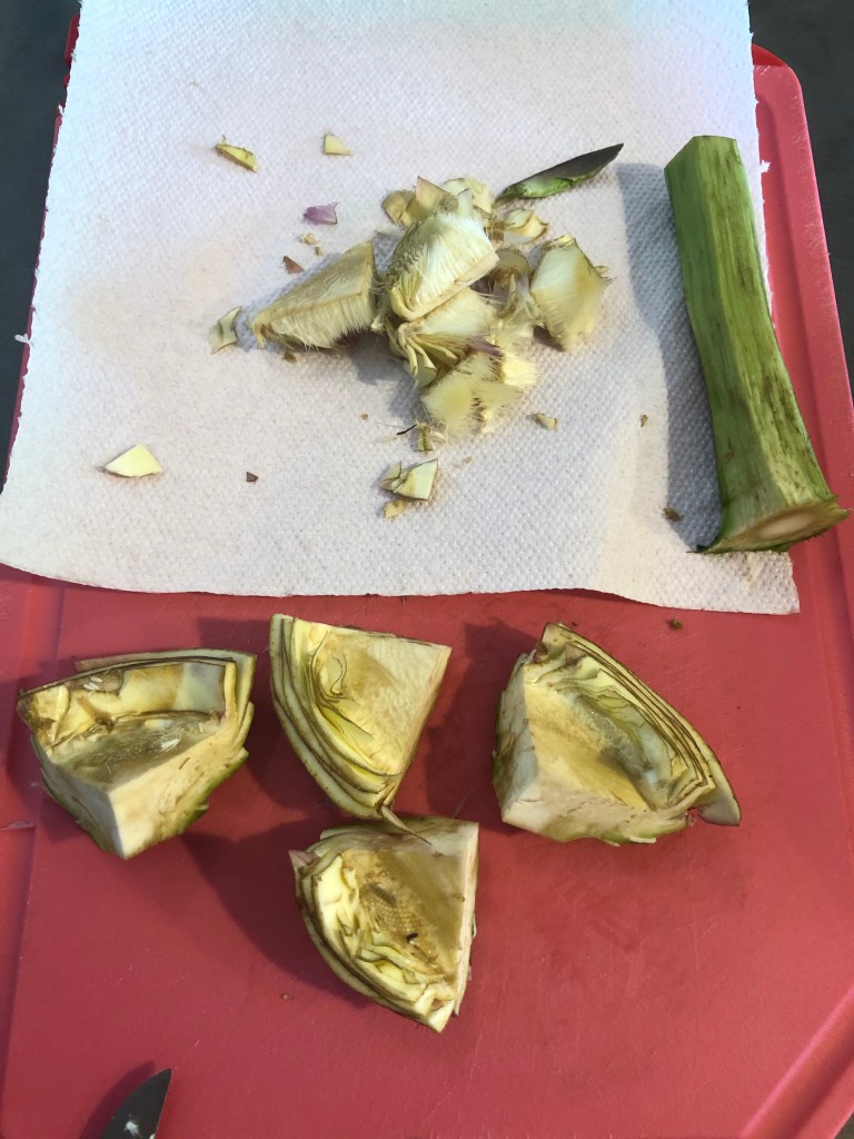 Li metto in un colapasta, aggiungo del sale grosso e metto sopra un peso per far perdere l’acqua e togliere l’amaro e le lascio per circa un’ora