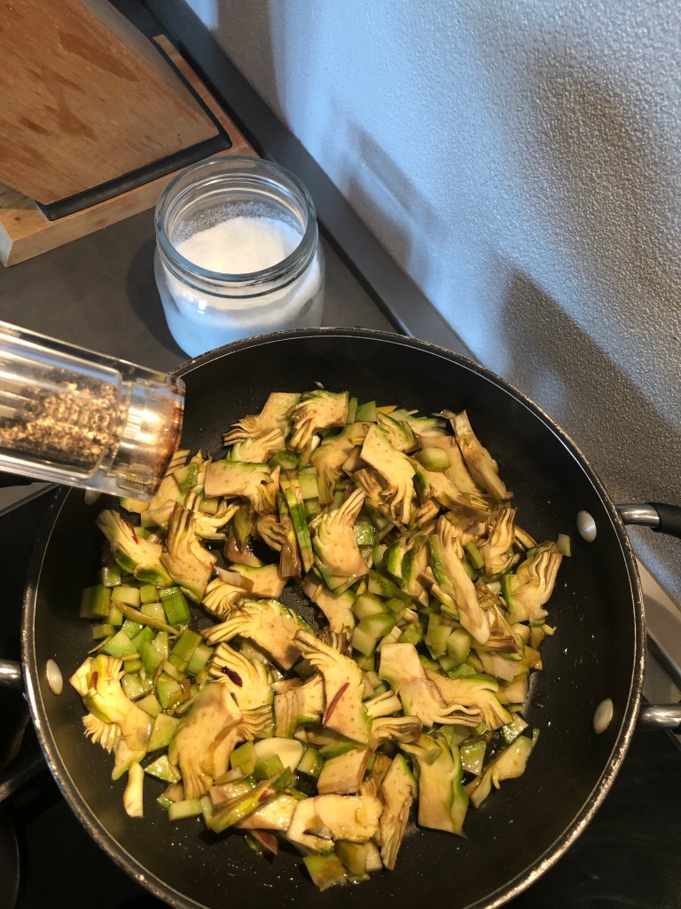 Trascorso il tempo le risciacquo e strizzo e le cuocio in padella con un goccio di olio extravergine