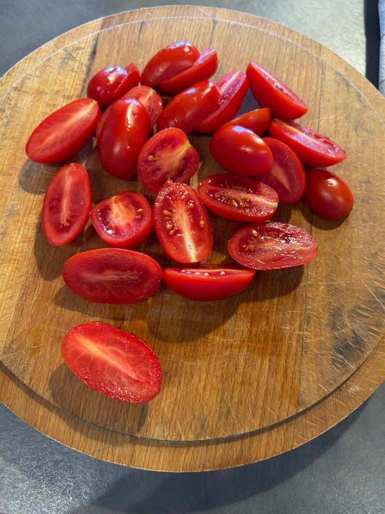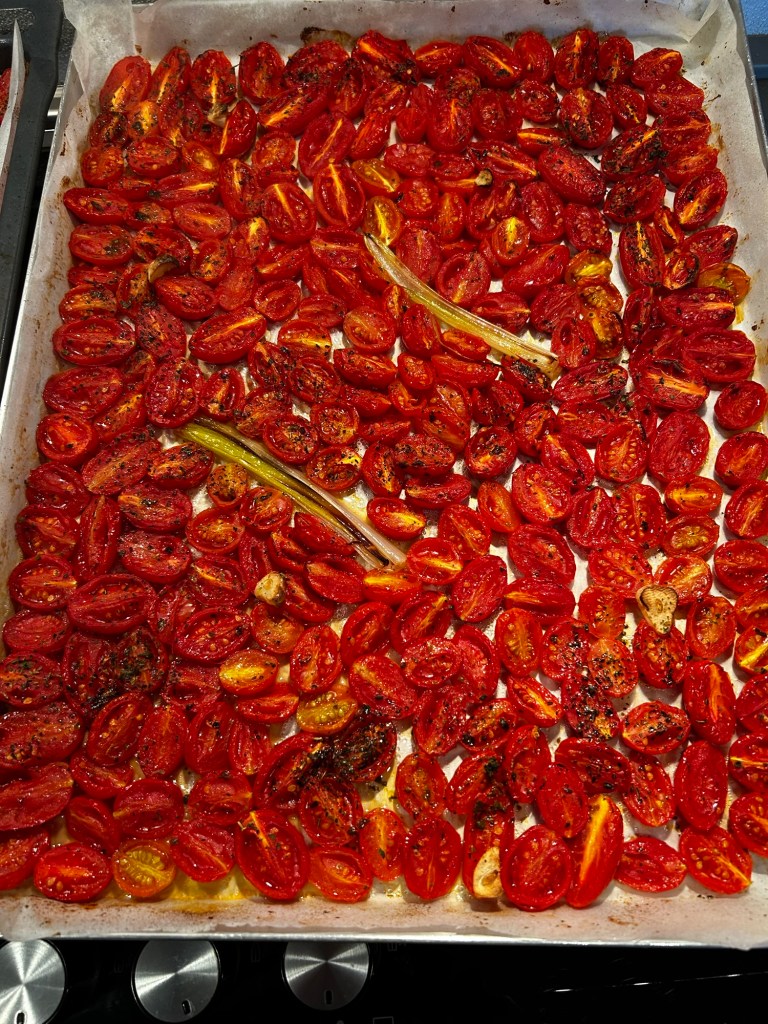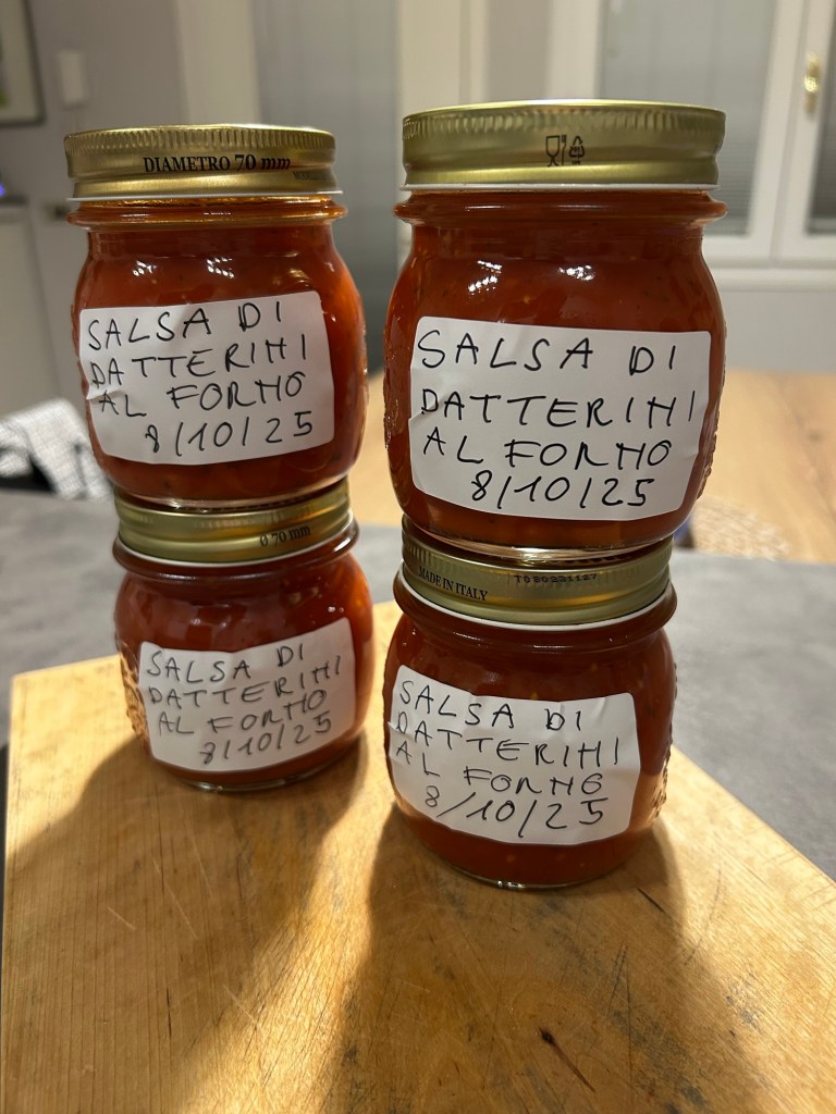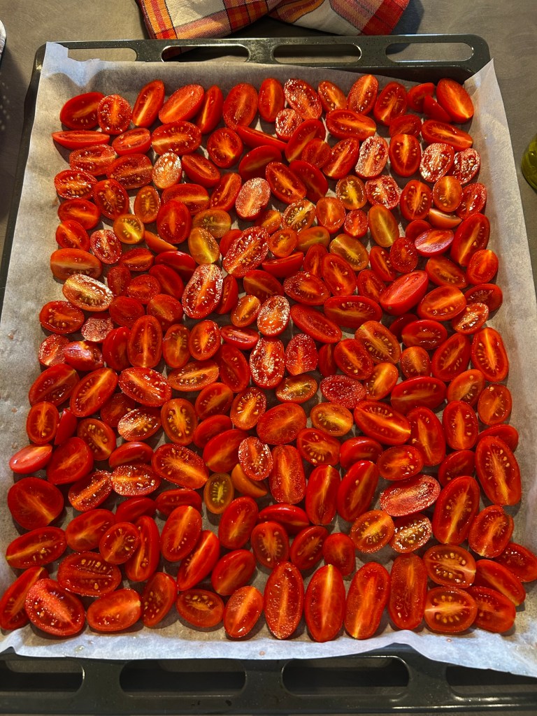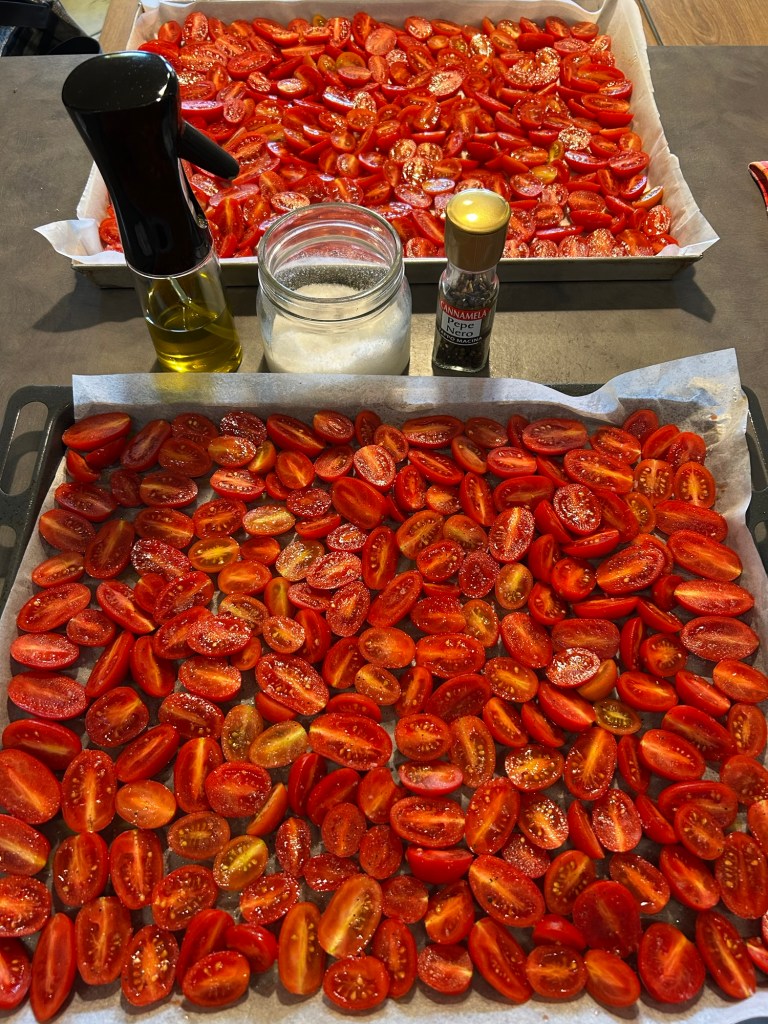 Avevo a disposizione una cassetta dí pomodori datterini, ho preparato della salsa super concentrata e saporita, un po’ di scorta per l’inverno preparata non con il classico metodo di bollitura ma in forno, si possono utilizzare tutti i tipi di pomodoro