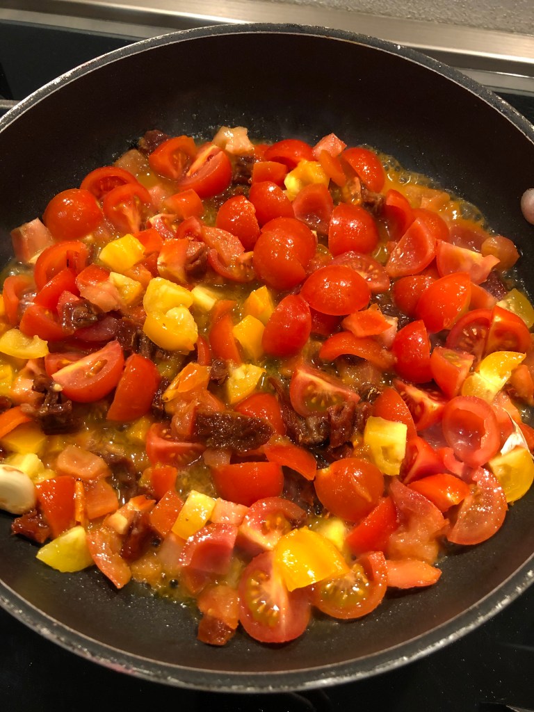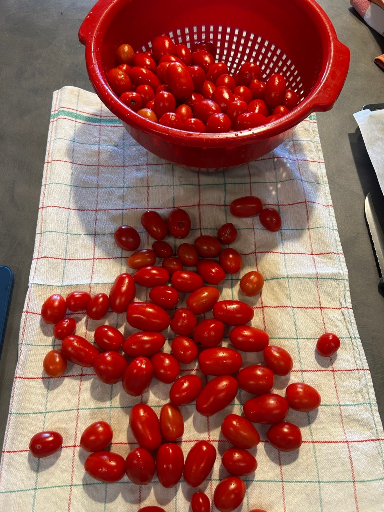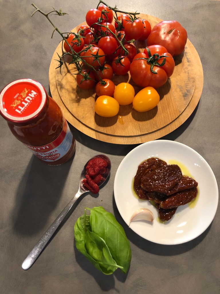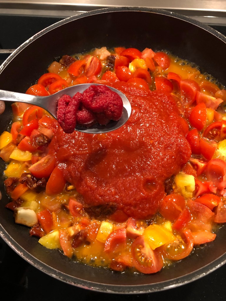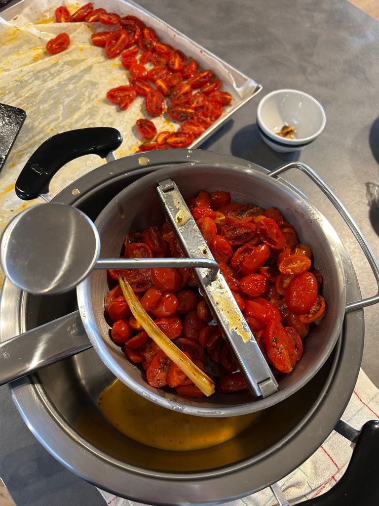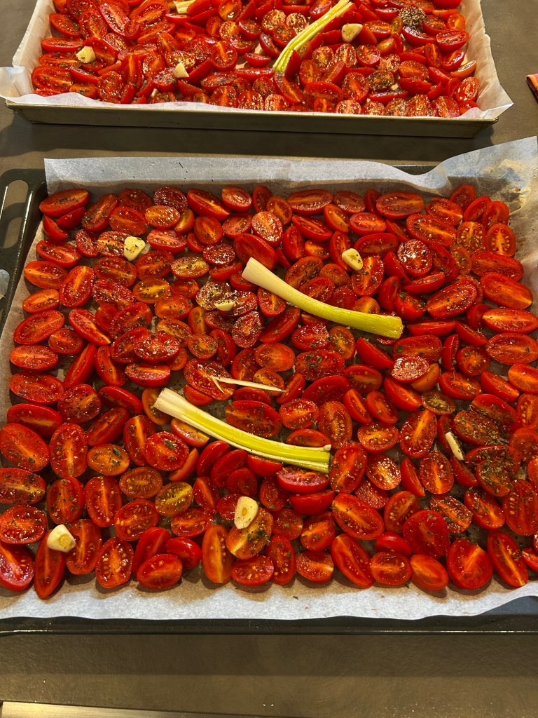 Avevo a disposizione una cassetta dí pomodori datterini, ho preparato della salsa super concentrata e saporita, un po’ di scorta per l’inverno preparata non con il classico metodo di bollitura ma in forno, si possono utilizzare tutti i tipi di pomodoro