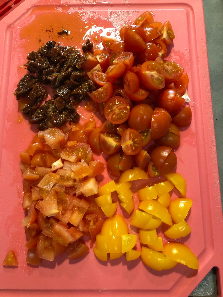 Lavo accuratamente i pomodorini tolgo il picciolo e li asciugo