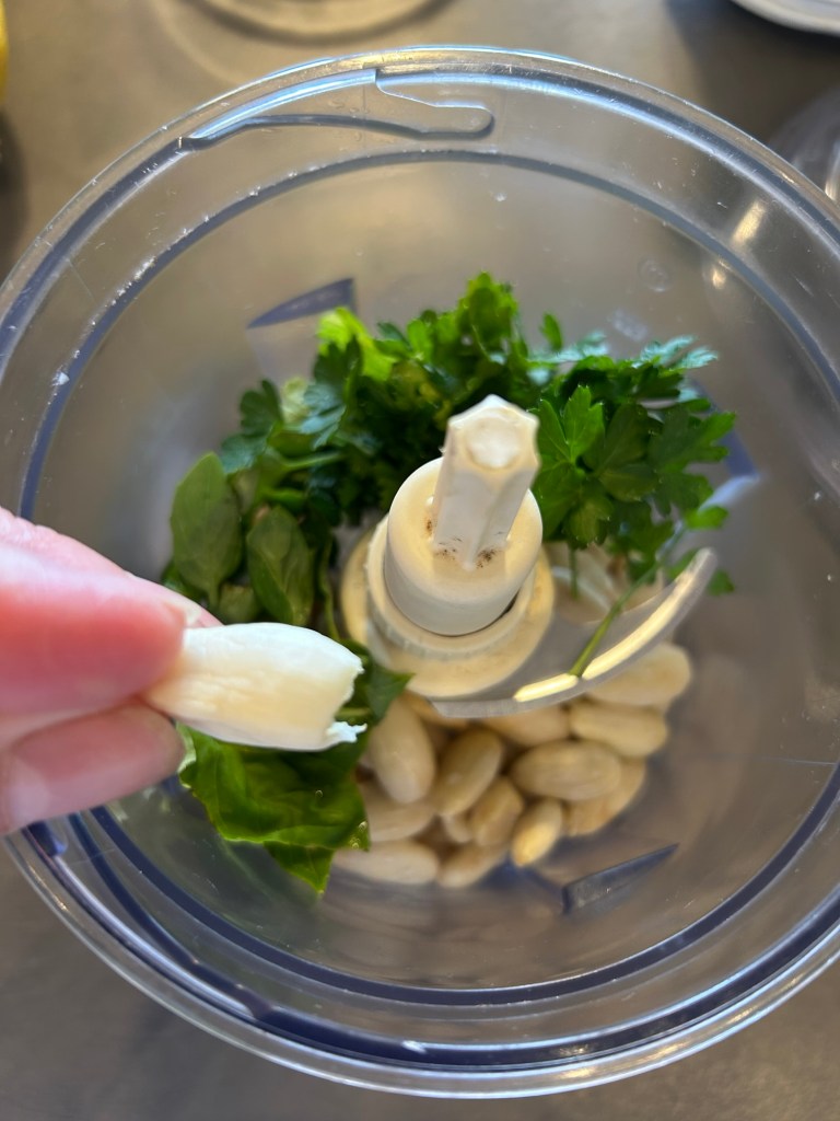 Con un passaverdura passo i pomodorini dopo aver eliminato l’aglio, li metto direttamente in una pentola
