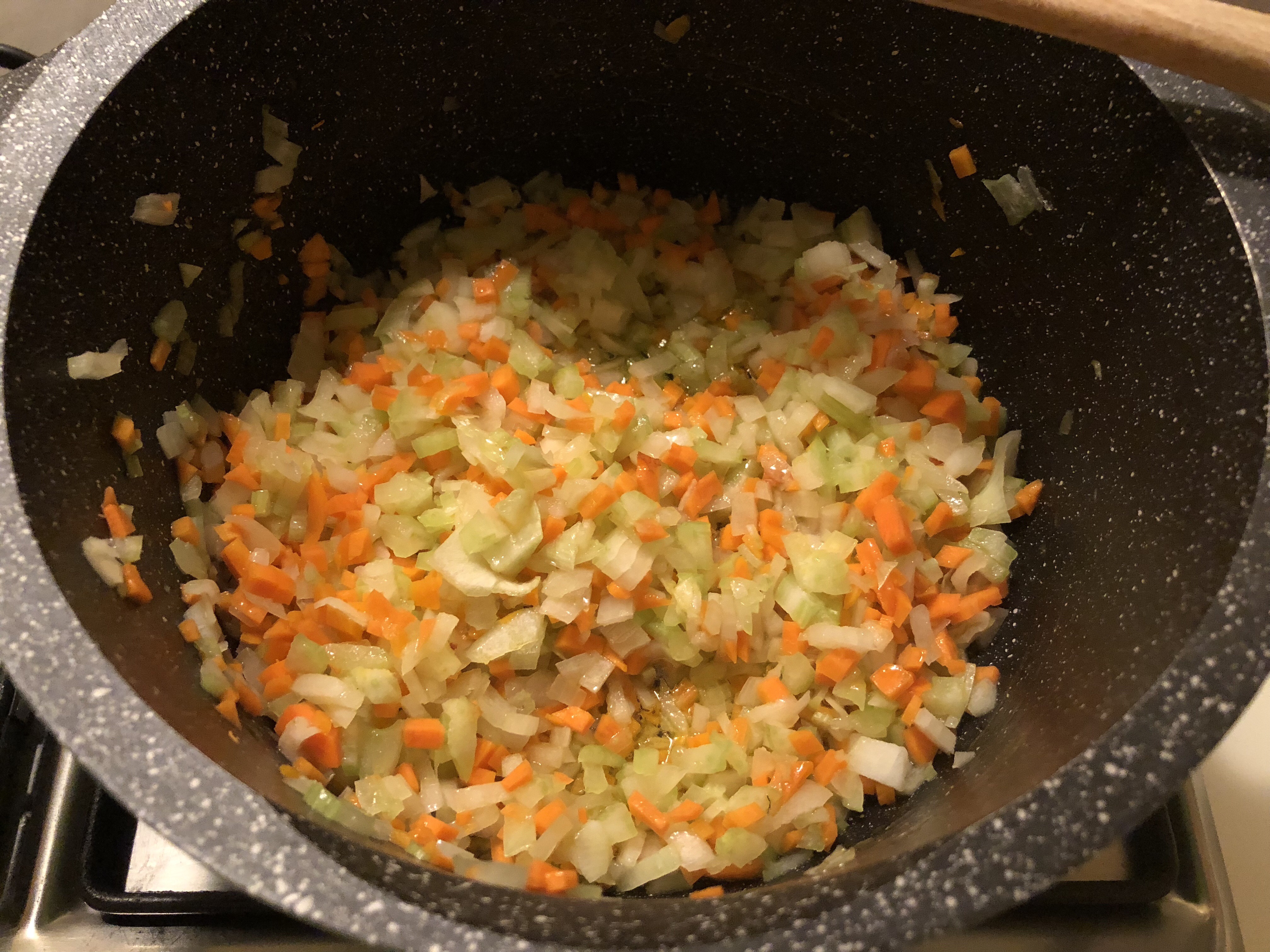 In una pentola verso abbondante olio extravergine e lascio stufare le verdure