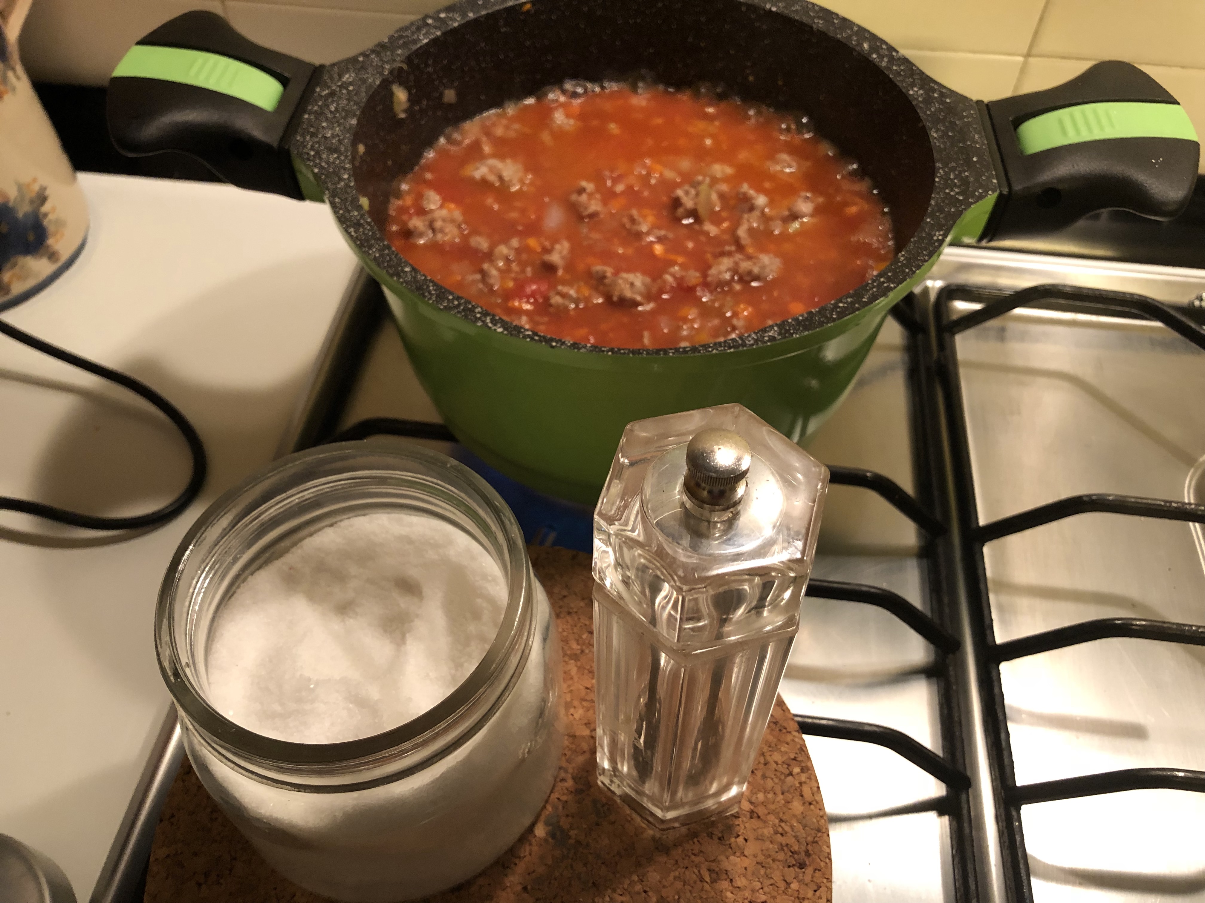 Regolo di sale e pepe, copro e lascio sobbollire per 30 minuti