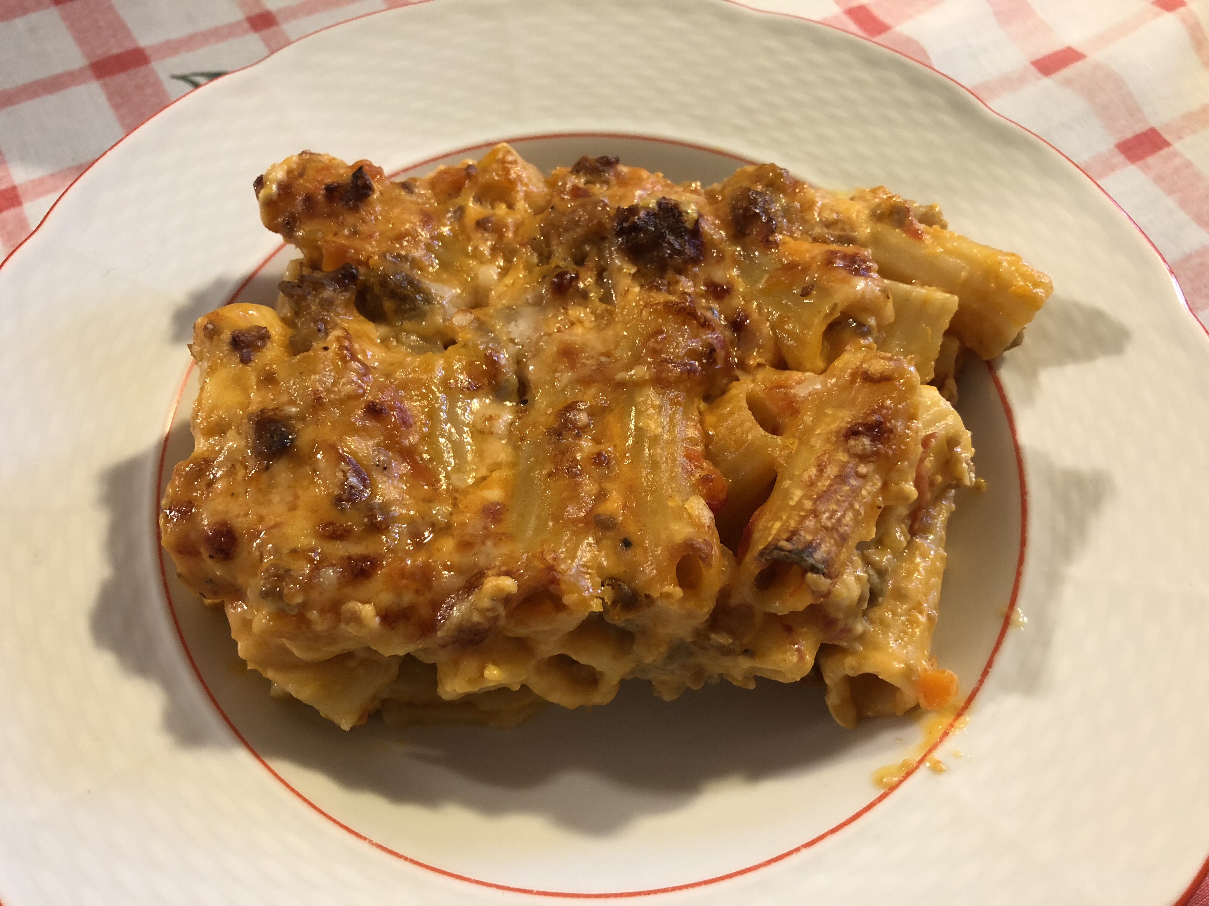 Se non avete tempo di preparare le lasagne con la pasta fresca un”ottima alternativa veloce e gustosa consiste nell”utilizzo della pasta tipo maccheroni, penne etc…Io ho preparato un sugo con la salsiccia ma sono ottimi con un ragù di carne o alle verdure o semplice pomodoro come più vi piace