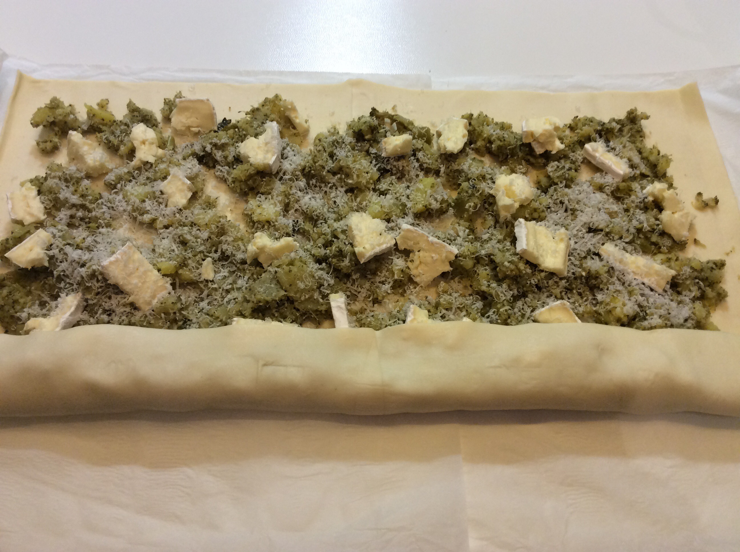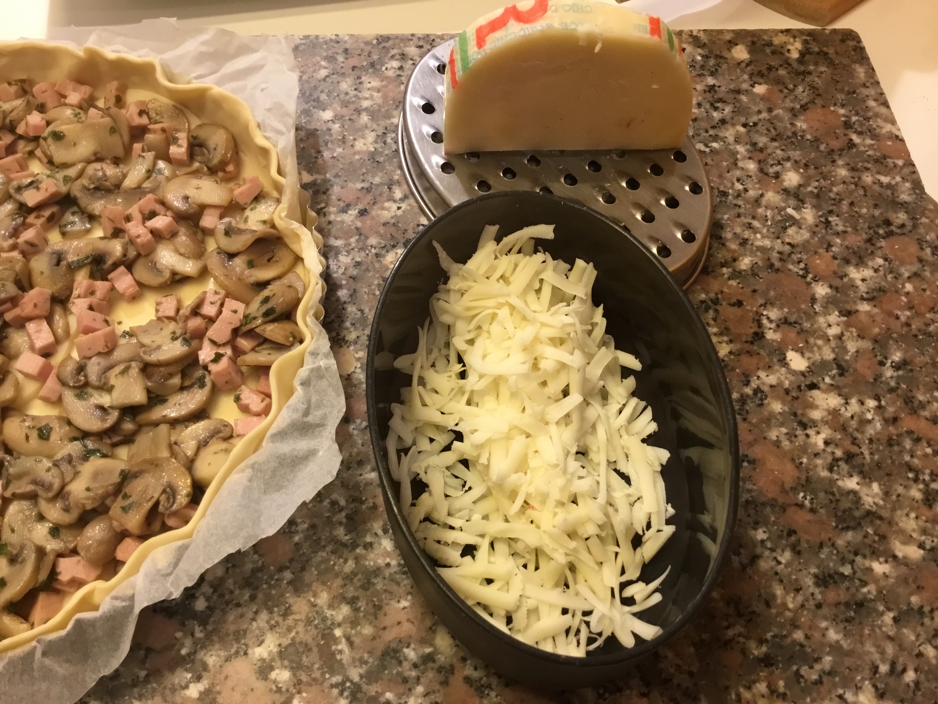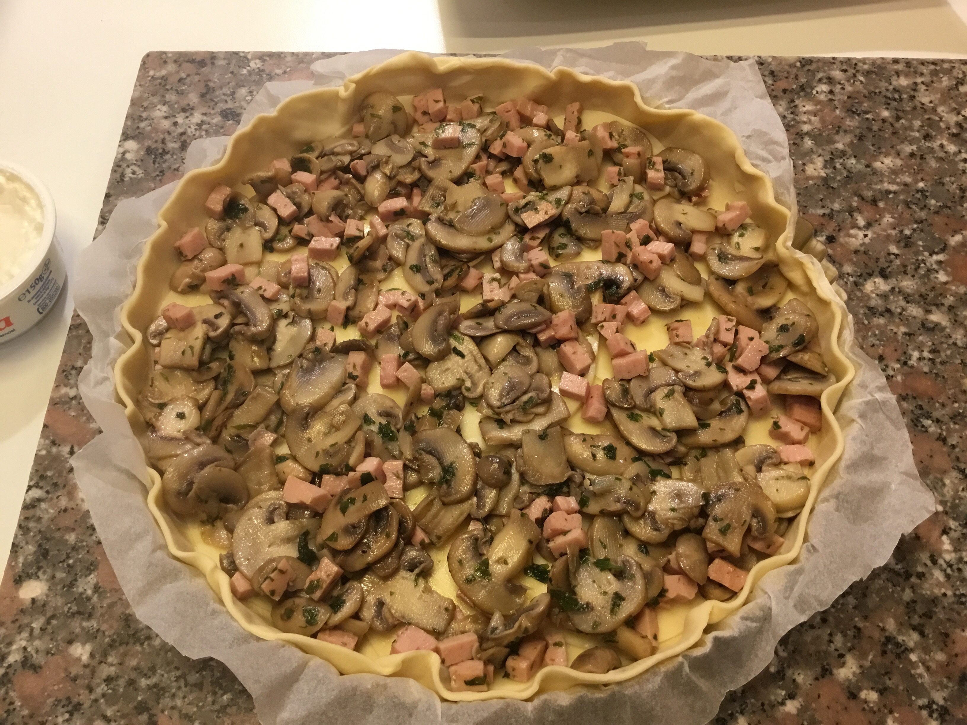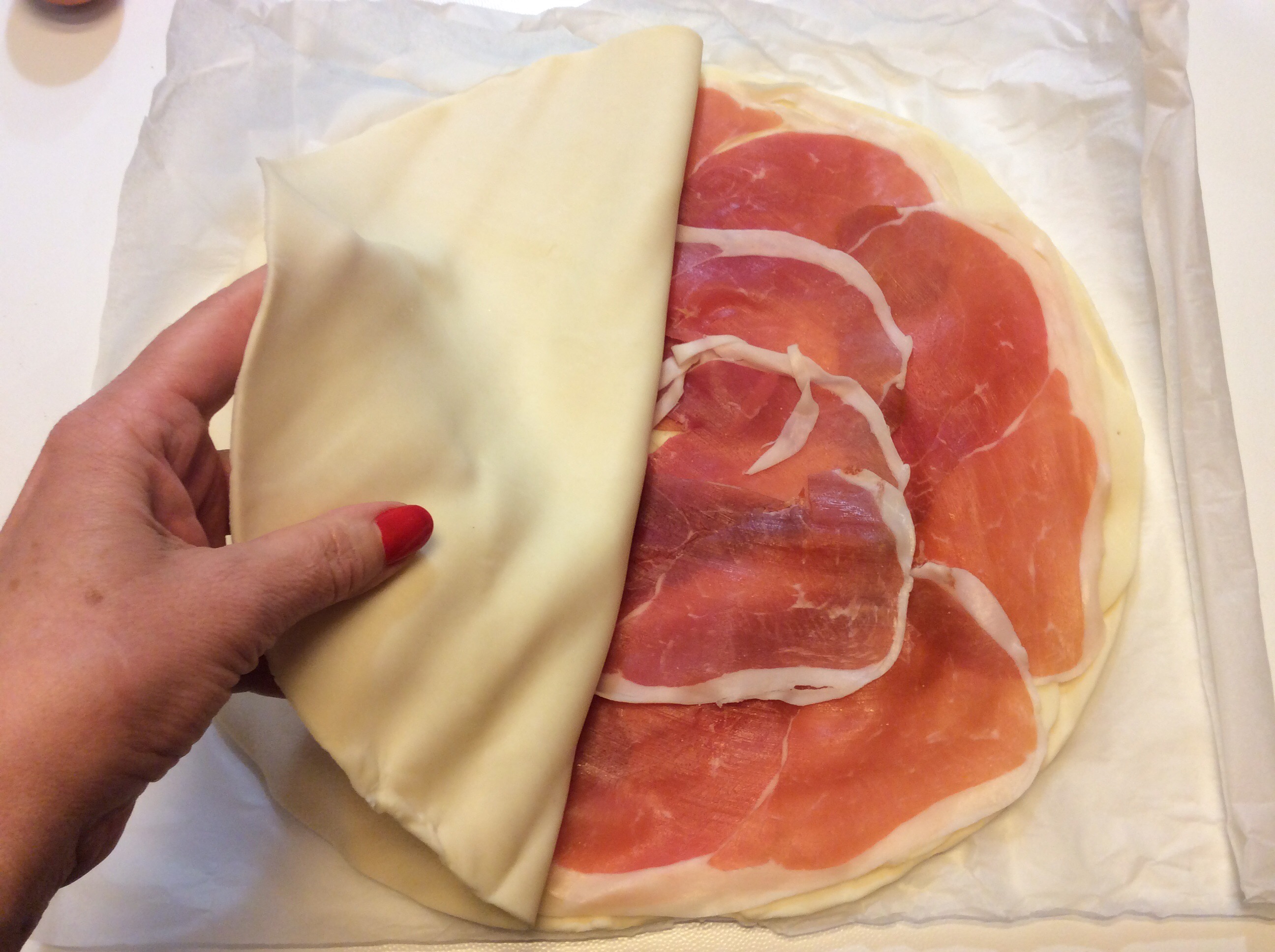Aggiungo il composto di prosciutto e funghi ormai freddo