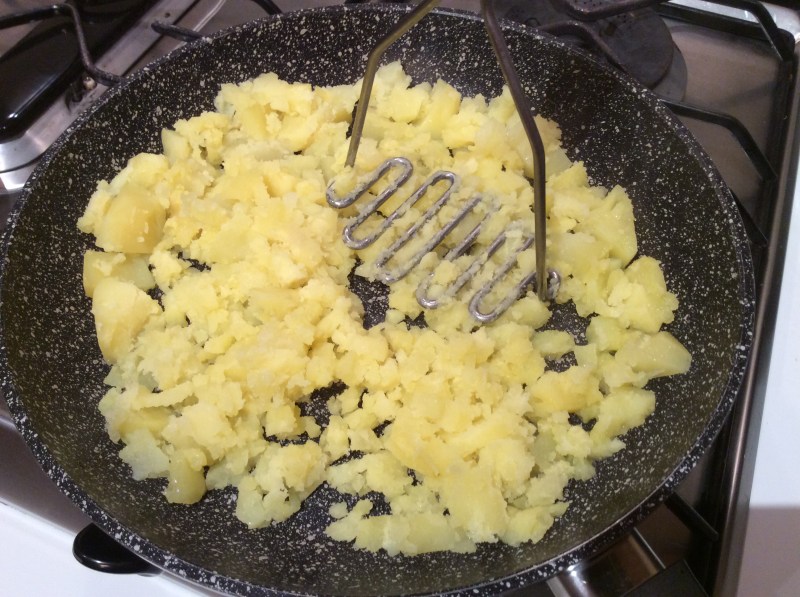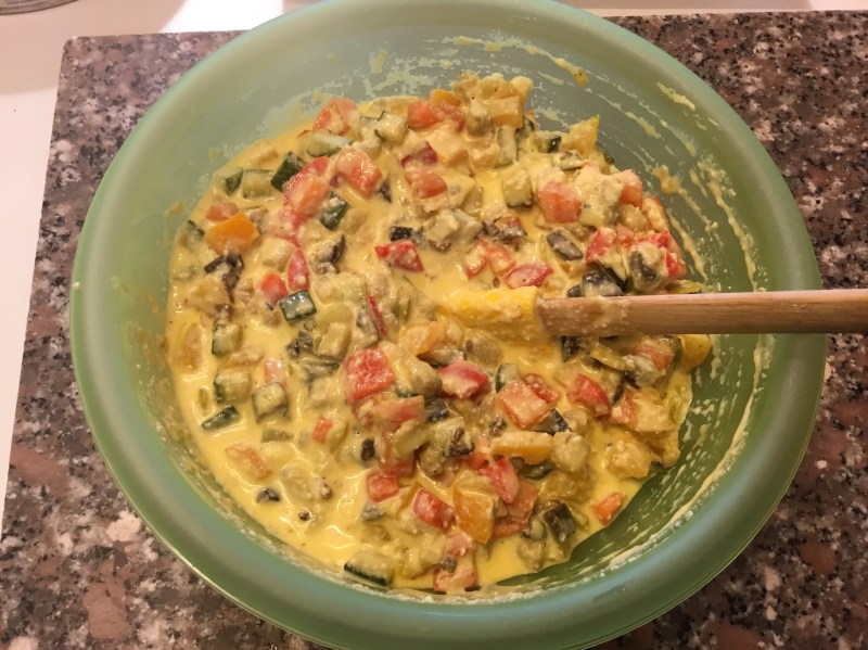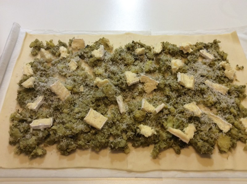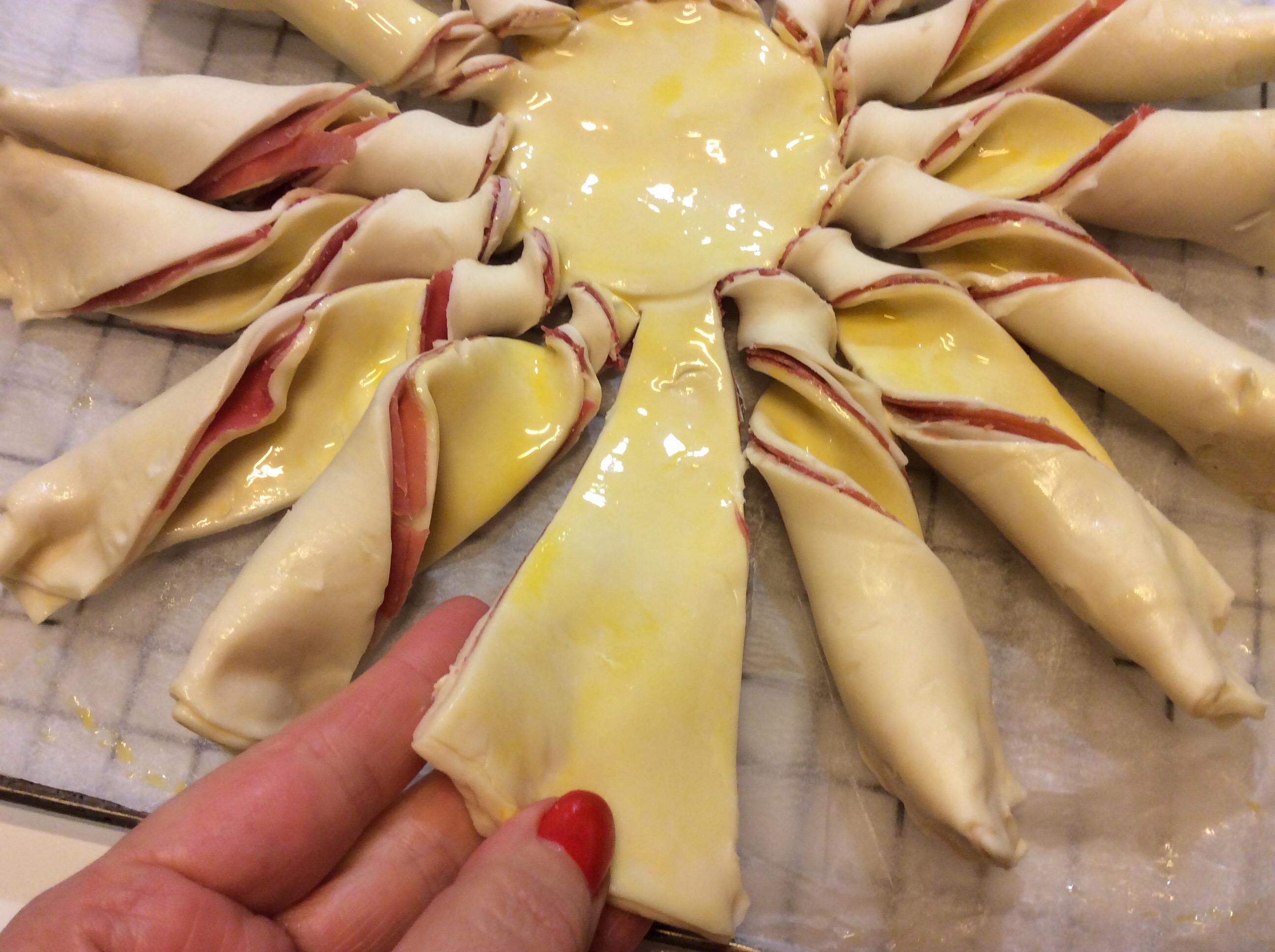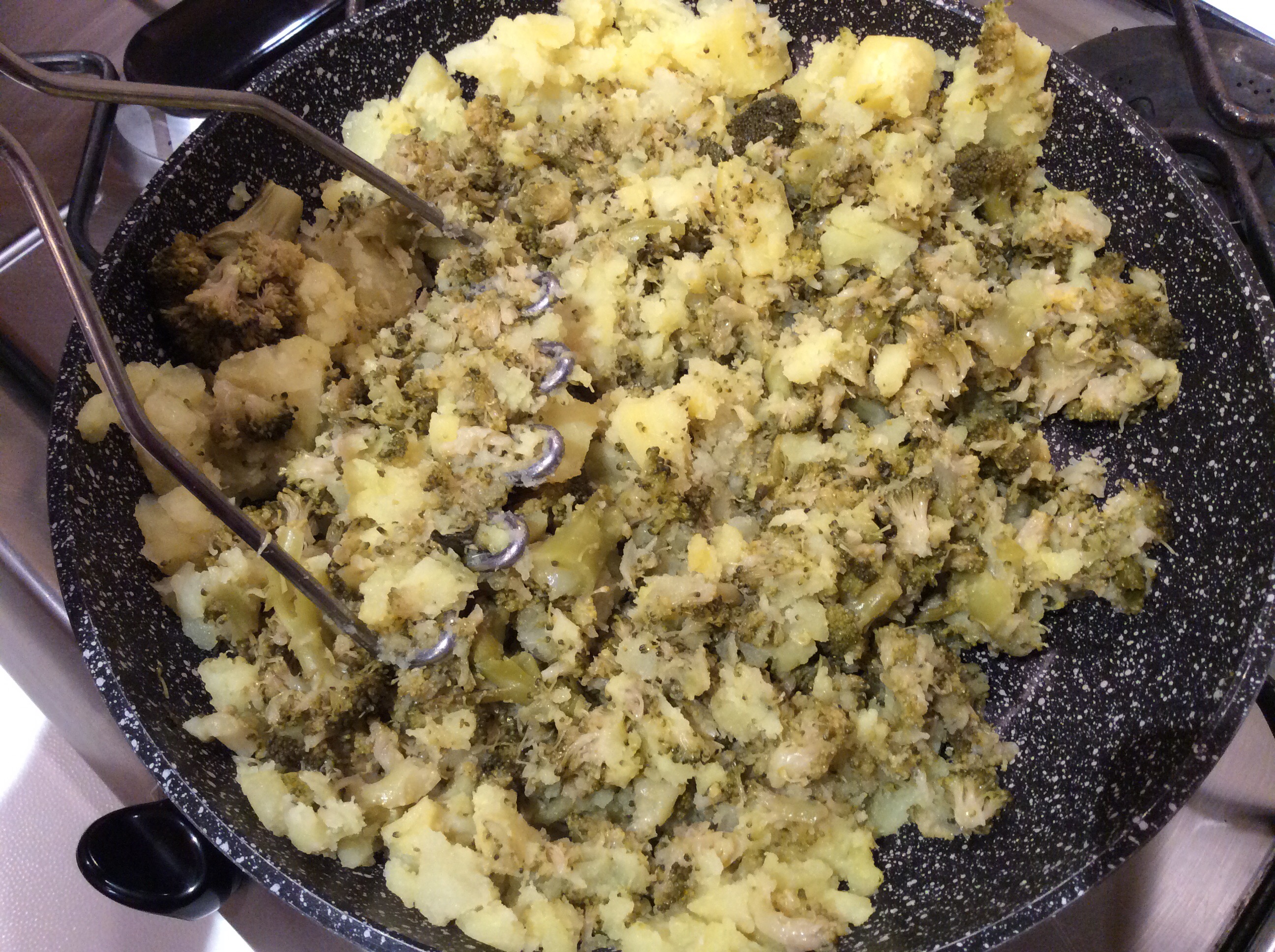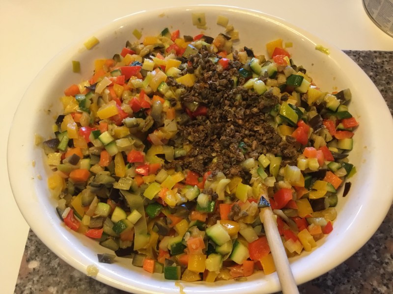 Aggiungo il composto di prosciutto e funghi ormai freddo