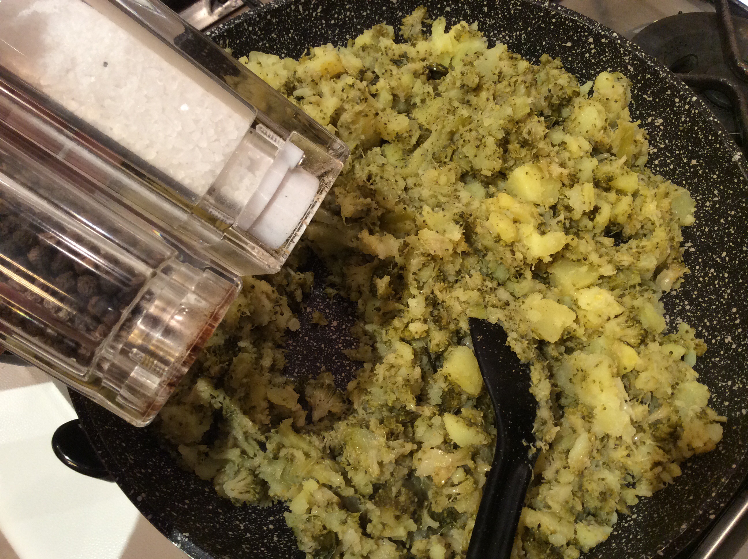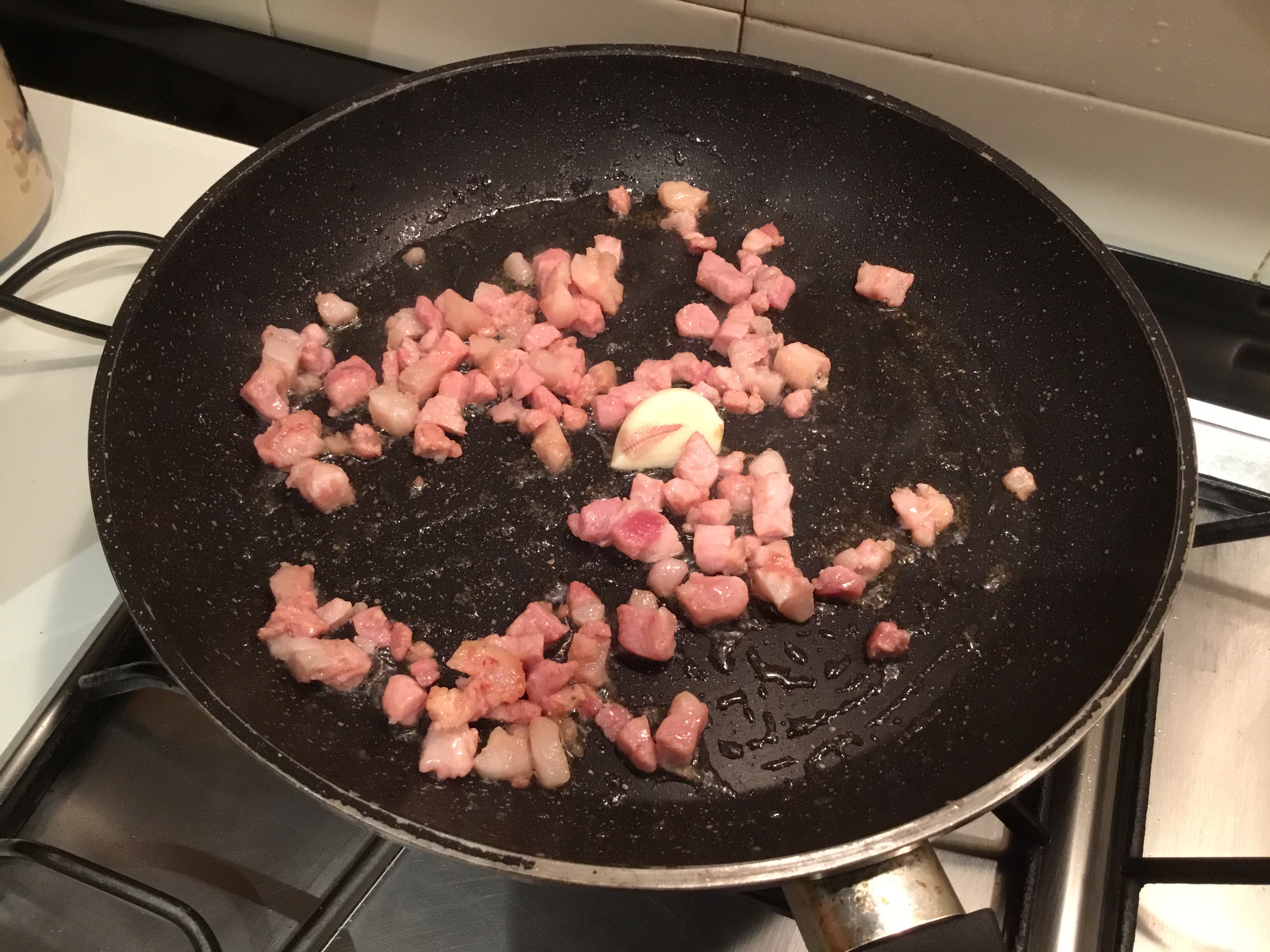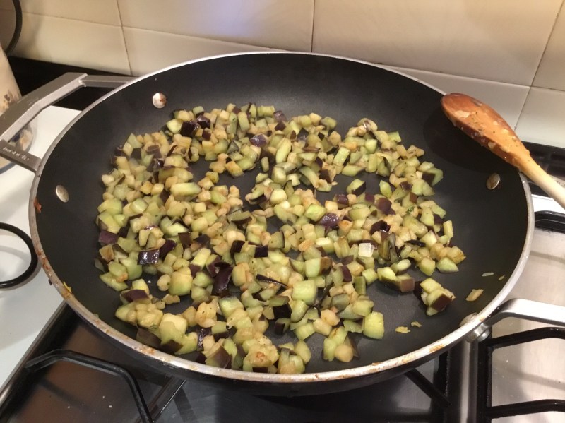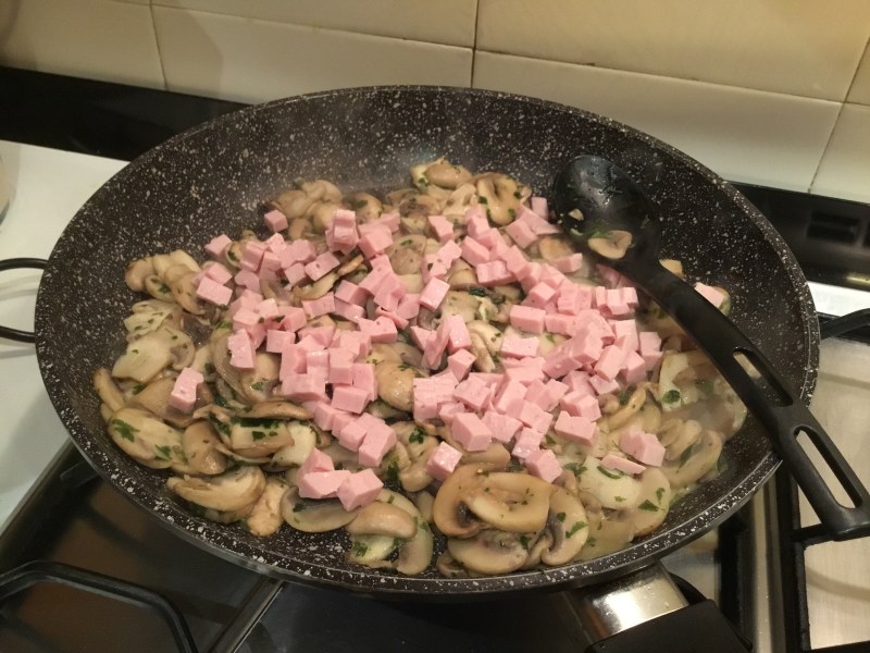 Aggiungo il prosciutto a dadini lascio qualche minuto e spengo lasciando raffreddare