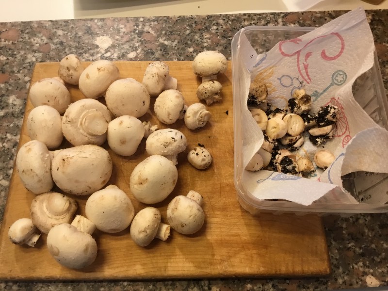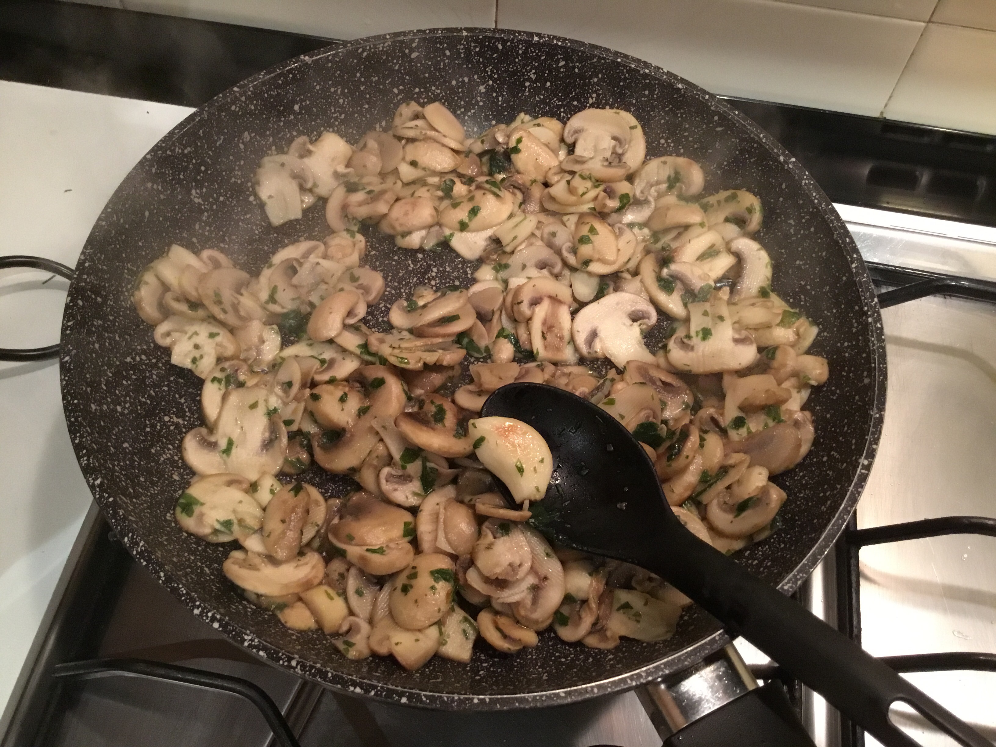 In una larga padella verso dell’olio extravergine con uno spicchio di aglio e quando é caldo verso i funghi e li cuocio a fiamma vivace, a fine cottura quando l’acqua che rilasciano in cottura sarà assorbita aggiungo sale e pepe, quindi elimino l’aglio e aggiungo del prezzemolo tritato