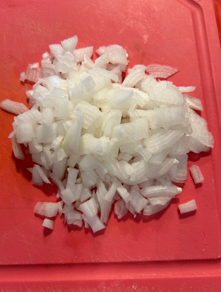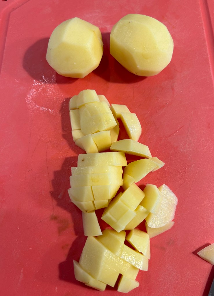 Sbuccio le patate, le lavo e taglio in piccoli pezzi