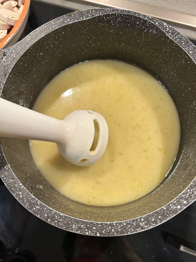 Dopo circa venti minuti le patate sono cotte, con un mixer frullo per pochi minuti, lasciando qualche pezzetto di patate intere
