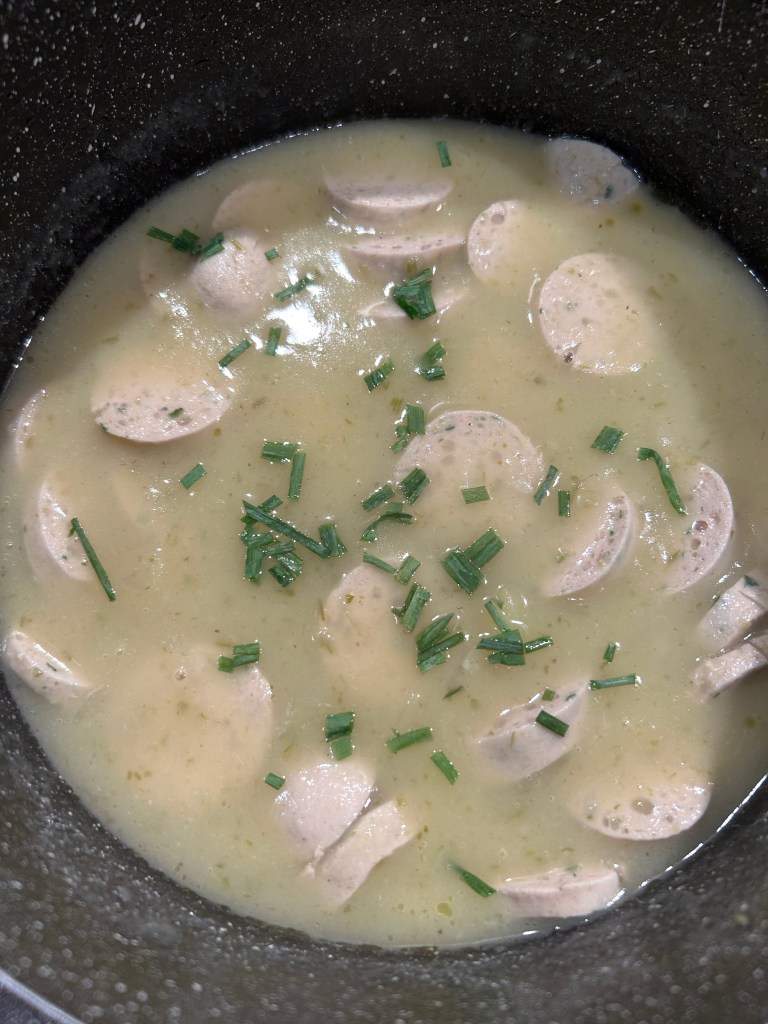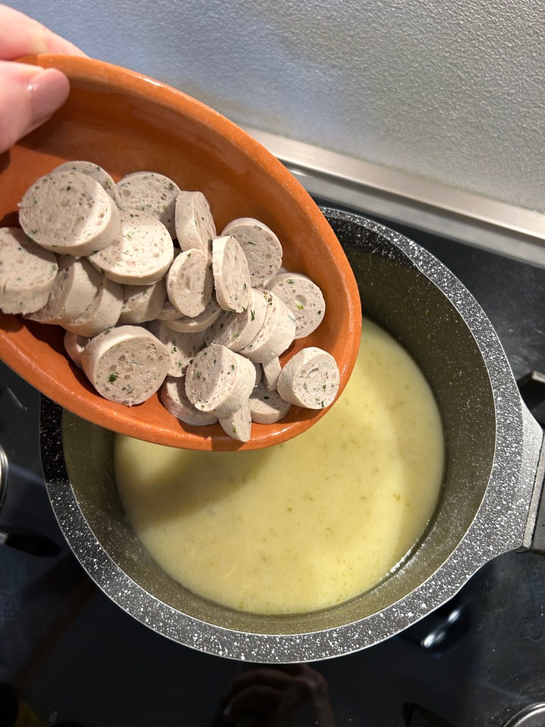 Quando vado in Germania torno sempre con una varietà di würstel, e pane, diversi da quelli che troviamo in Italia, con gli avanzi dei weiß würstel ho preparato questa semplice ma buonissima zuppa, potete utilizzare i würstel che preferite, questi sono particolarmente saporiti