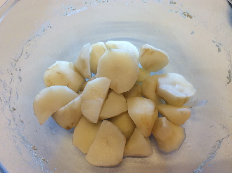 Ho sbucciato le patate, le ho tagliate a piccoli cubetti che ho cotto per 5 minuti a microonde con poca acqua, le ho scolate e finito la cottura in padella con burro e salvia, poco sale fino a completa cottura